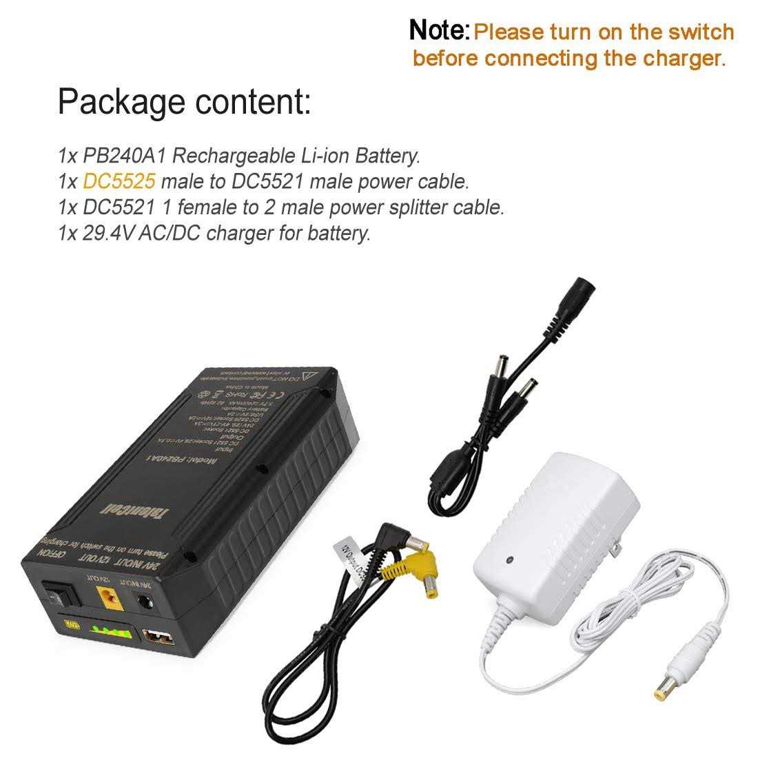 Talentcell PB240A1 Rechargeable 22400mAh 82.88Wh 72W Lithium Ion Battery Pack with 3 Port Output (DC 24/12V and 5V USB) for LED Light Strip, CCTV