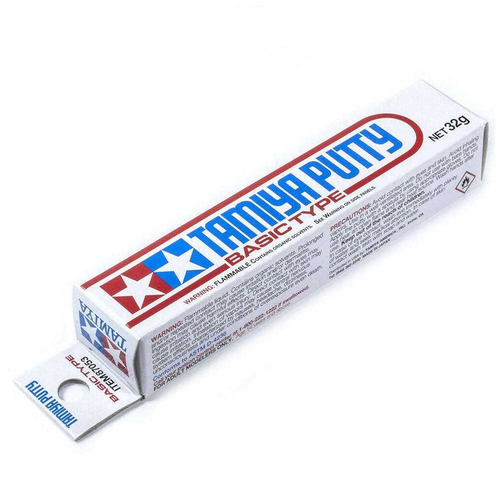 This laquer-type putty is specially formulated to bond with plastic. It dries naturally in a bright gray and can be easily painted. This putty contains an aluminum paste which allows for a much finer, more wet finish compared to putty of the past.Tamiya Basic Type Putty is used for filling in seams when assembling plastic model kits or RC models that use ABS or styrene plastic bodies. The putty is gray in color and may be applied with a flat surface tool. Note: Tamiyas basic type putty is not intended to fill large gaps. It is meant to fill in seams and imperfections in plastic model surfaces. The basic putty may also be used for resin model, metal model and vinyl model applications. Tamiya Basic Type Putty is used for filling in seams when assembling plastic model kits or RC models that use ABS or styrene plastic bodies.