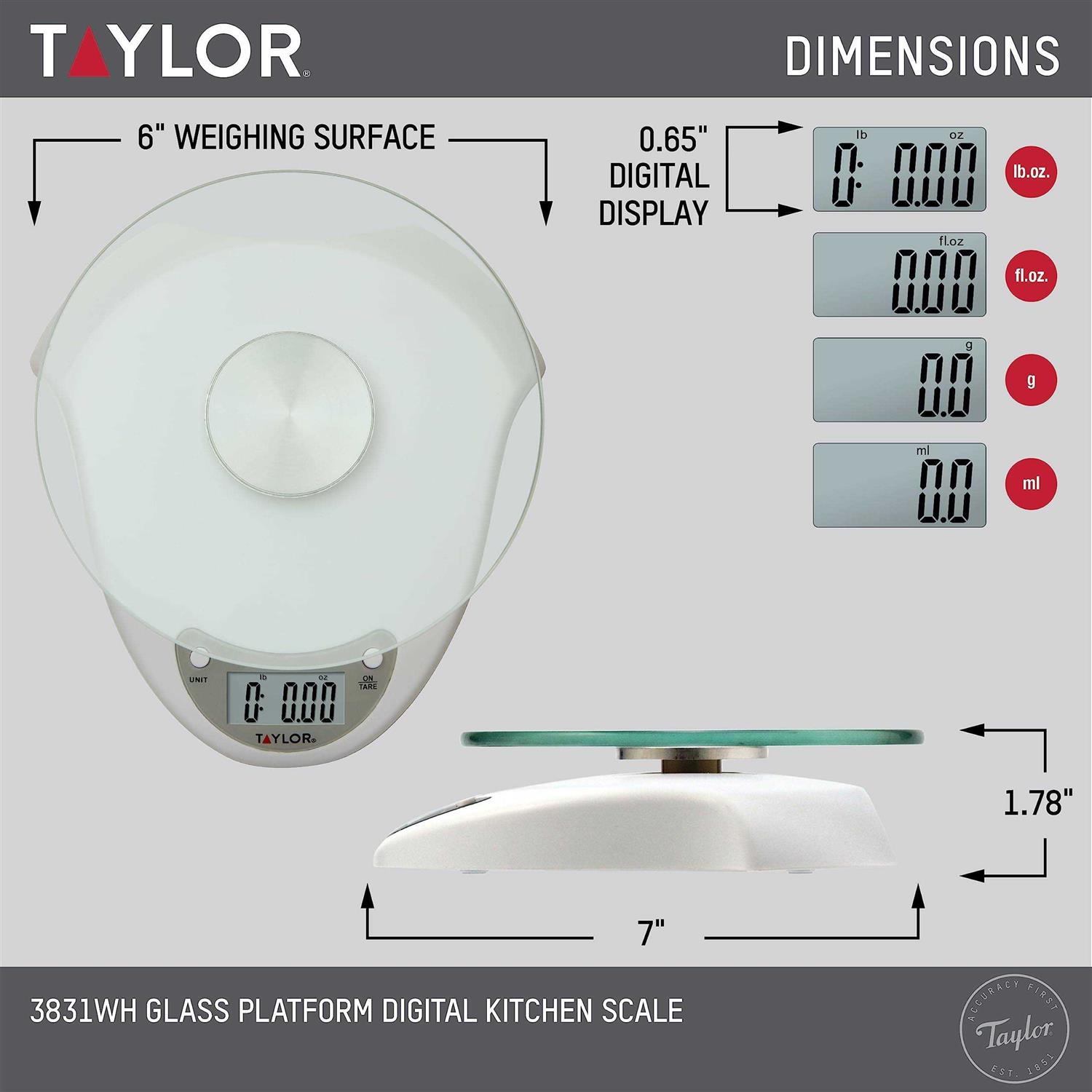 Taylor Kitchen Scale, Glass Platform, Digital