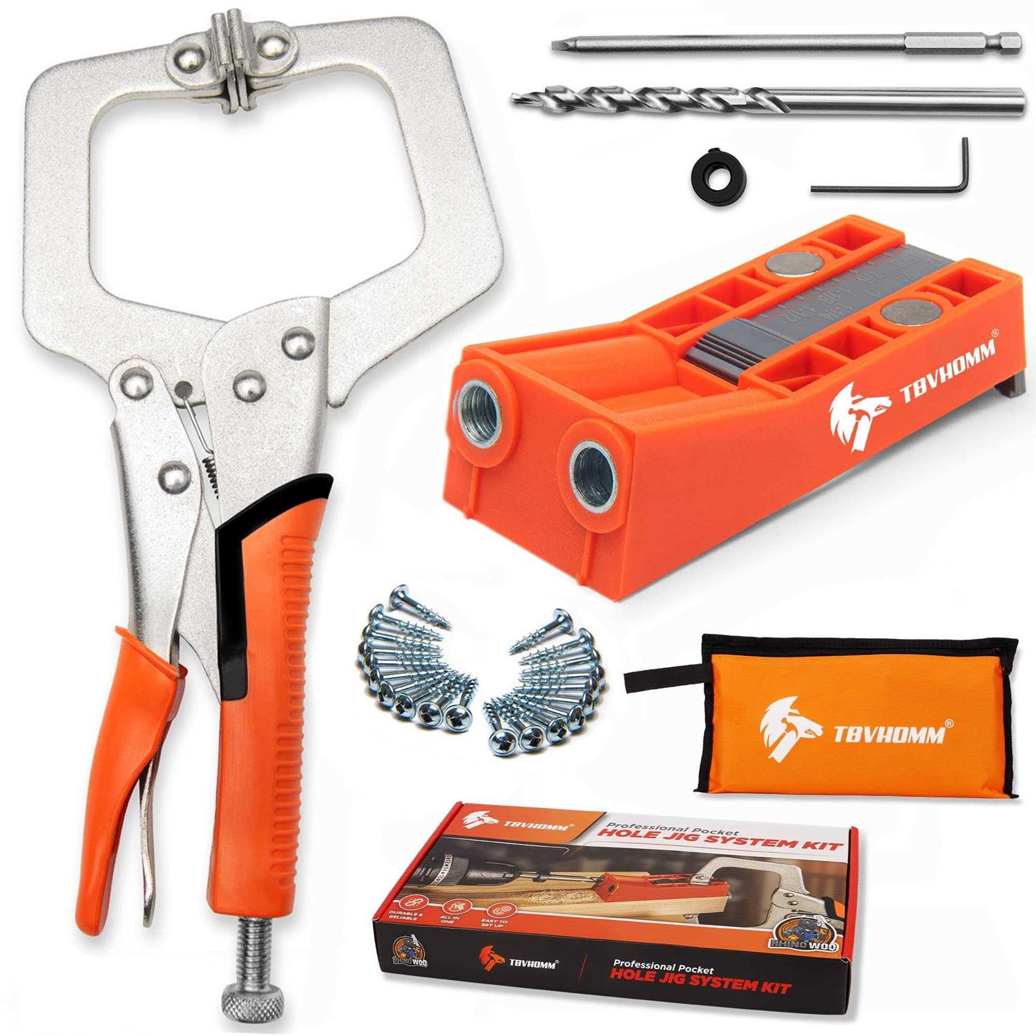 Brand: TBVHOMMFeatures: 【ALL IN ONE】TBVHOMM pocket hole jig kit included a adjustable pocket hole jig, 11 inch C-clamp, step stop collar, hex key, step drill bit, coarse square driver, 1” screws*20. All packed in a portable case. 【ACCURATE, DURABLE AND RELIABLE】TBVHOMM pocket hole jig is made of high stiffness, durable nylon and the core is made of high strength hardened steel. Incredibly accurate pocket holes can be achieved. 【DOUBLE CHIP HOLE】Double chip discharge holes. Sawdust can be more easily discharged from the pocket hole jig. 【EASY TO SET UP】:This pocket hole jig is with 9 position setting, you can easy adjust the slider plate for different size wood. And it comes with two strong magnets allows the C-clamp to clamp firmly without slipping when drilling. If you encounter any problems when using, please feel free to contact the seller. Binding: Tools & Home ImprovementPart Number: TBVHOMM-XKGDQEAN: 0612755573359Package Dimensions: 10.0 x 6.1 x 1.7 inches