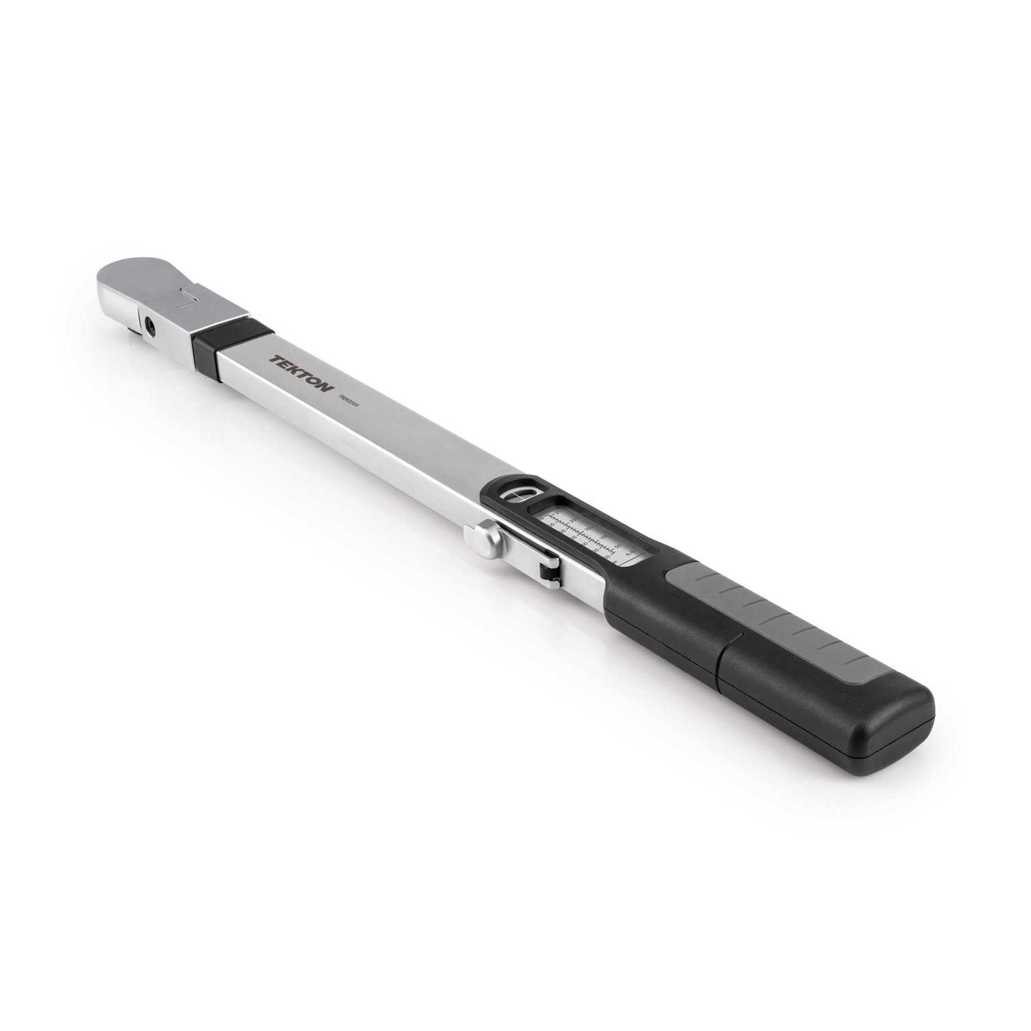 Torque Wrenches by TEKTON. Details:The TEKTON 1/2 Inch Drive Split Beam Torque Wrench is accurate to +-4% throughout its entire 40-250 foot-pound range. Each wrench is serialized and calibrated according to the ASME B107. The detailed test results are recorded on the included calibration certificate. Unlike other torque wrench designs, this wrench can be stored at any torque setting without losing accuracy.