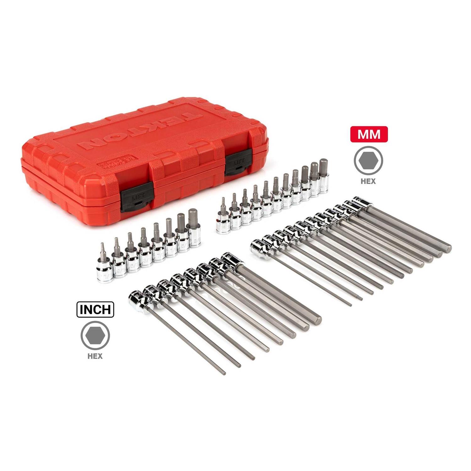 Tekton SHB91316 3/8 in. Drive Hex Bit Socket Set, 38-Piece (1/8-3/8 in., 3-10 mm)