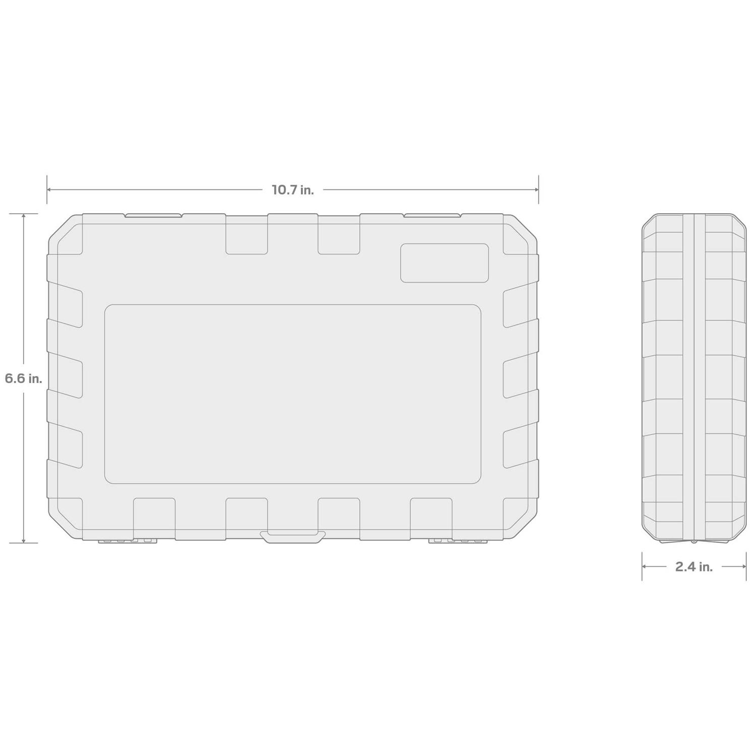TEKTON heat-treated S2 steel bits are press-fit into the socket for a straight, tightly mated fit that can’t loosen over time or under stress. The hex tips are machined to precise tolerances for an exact fit with hex fasteners. Large, stamped size markings are permanently impressed into the material by a roll-stamp die. Detent grooves and beveled edges provide a smooth and secure connection with the drive tool. Sturdy, clearly marked storage case is made from high-density polyethylene material that withstands exposure to common lubricants, fuels, and solvents.