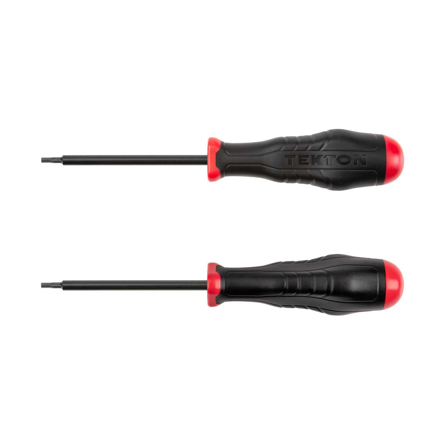 Combine power and speed with the unique handle of the TEKTON T10 x 4 in. The handle relies on three-sided geometry, not just friction against your skin, giving you the comfortable leverage to break stubborn fasteners loose. For easy installation and assembly work, rounded top and bottom sections let your fingertips spin long fasteners quickly. The blade is made of premium chrome molybdenum steel and is strengthened through an exacting heat treating process. Rather than a layer of plating, the steel surface of the blade is directly treated with a hot black oxide finish-the same process used to protect firearms. This finish can’t flake off, and it preserves the precisely sized tip for an exact fit in fasteners over time. The butt end has a clear size marking that is easy to identify in your tool belt or chest drawer. TORX is a registered trademark of Acument Intellectual Properties, LLC.