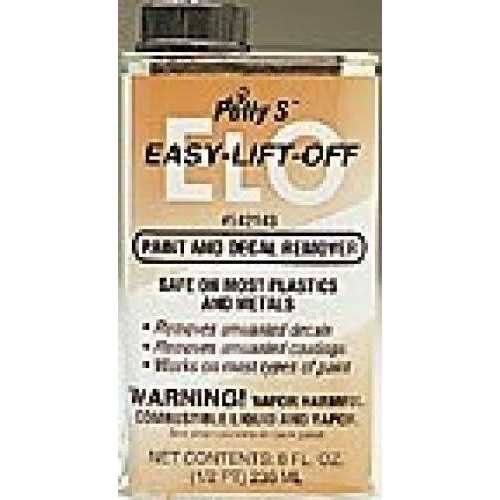 Easy-Lift-Off is the easy way to remove decals and paint from plastic surfaces. Ideal for model railroad applications, as well as model planes, cars, and figures. ELO is ideal for any application where the removal of paint is necessary without removing molded details.