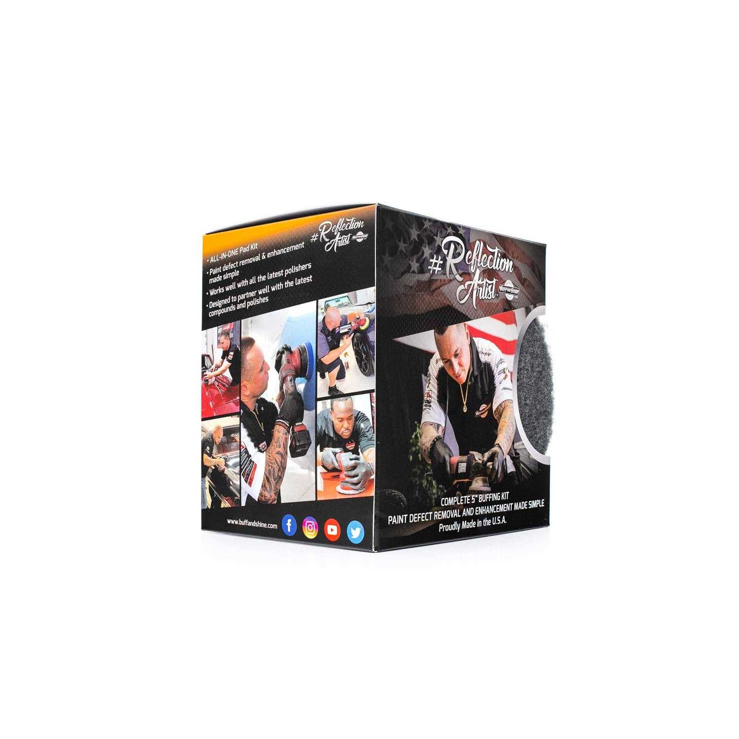 Buffing & Polishing Pads by The Rag Company. Details:If you are not already familiar, the Reflection Artist Pad Line by Buff and Shine Manufacturing is a select combination of some the most innovative pads available in the industry today. This unique pad combination was created from a select few pads from our current URO pad line, as well as some specially designed NEW pads created to complete this ALL-IN-ONE pad system! Buff and Shine Manufacturing. developed a way to make it even easier to become a Reflection Artist by creating a cool and easy-to-use kit containing all the pads you need!