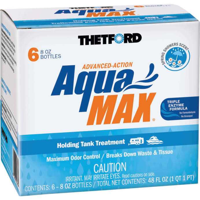 AquaMax Holding Tank Treatment’s advanced enzyme powered formulas neutralize odors and accelerate waste digestion to prevent clumping, clogging and tank residue, all at the same time. Thetford’s beneficial probiotic treatments are Bronopol Free and Formaldehyde Free to provide campground friendly and California compliant solutions. Breaks down waste to prevent clumping, clogging and tank residue.