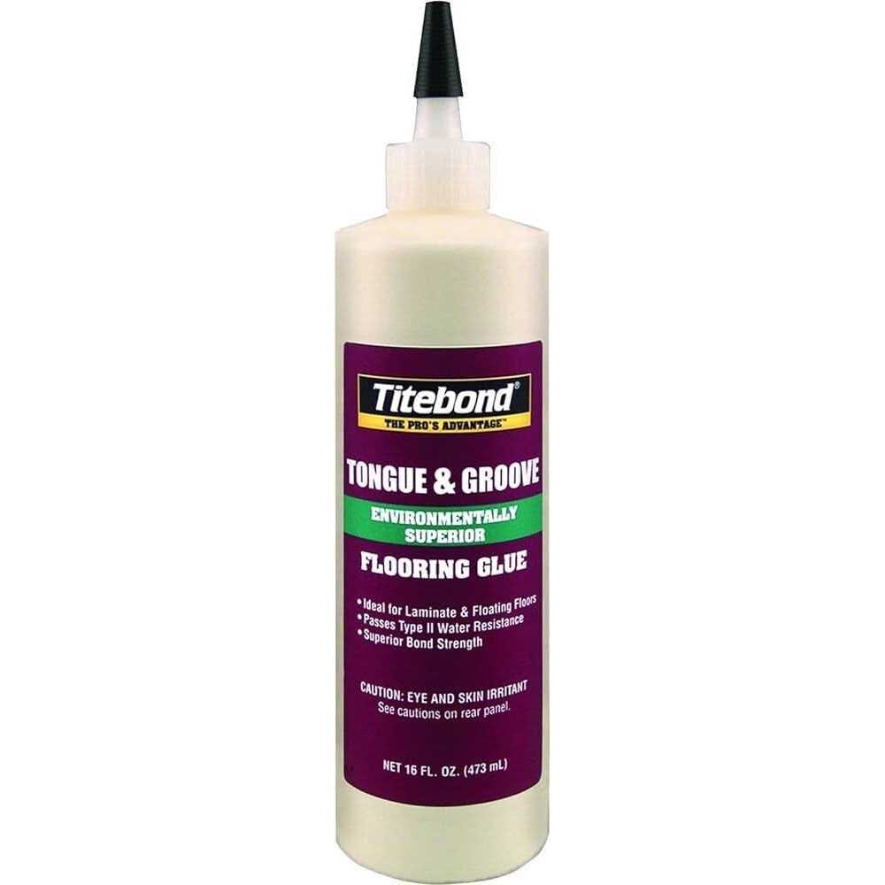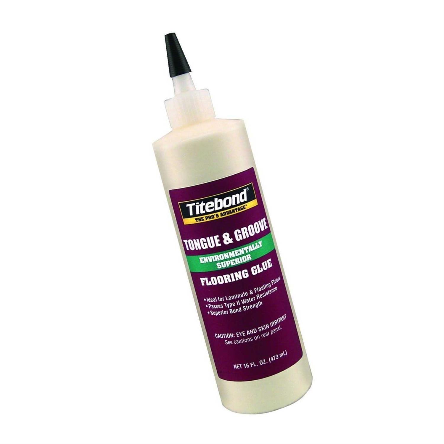 Titebond Tongue & Groove Flooring Glue is a premium wood glue that passes the stringent ANSI Type II water resistance test. In addition, it offers a lower chalk temperature and a two-year shelf life, both of which make it unique to the industry. Titebond Tongue & Groove Flooring Glue is specifically formulated for all types of engineered floating wood and laminate floating floors, even over radiant heat systems. It provides a superior bond at the tongue and groove. Due to its white color, the glue is easy to see for quick cleanup. It is non-toxic and nonflammable, making it safe to use and environmentally friendly. Titebond Tongue & Groove Flooring Glue gives the professional installer the highest level of protection against potential moisture problems, while maintaining a strong ultimate bond.