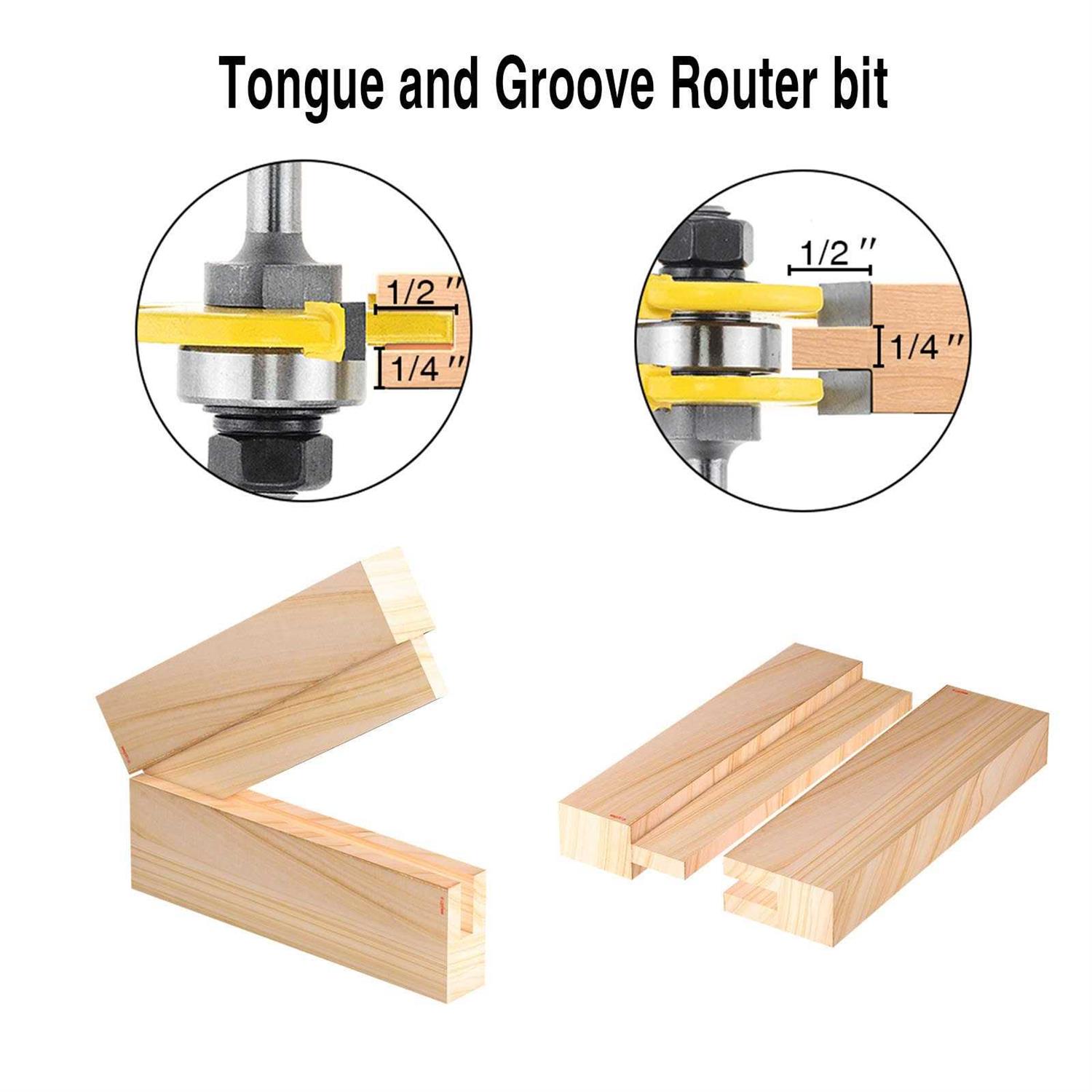 Tongue and Groove Router Bit Set , 2pcs Wood Milling Cutter for Woodworking (1/2 inch Shank)