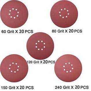 - 20 pcs Each of 60 80 120 150 240 Grits 9 inch sanding discs.