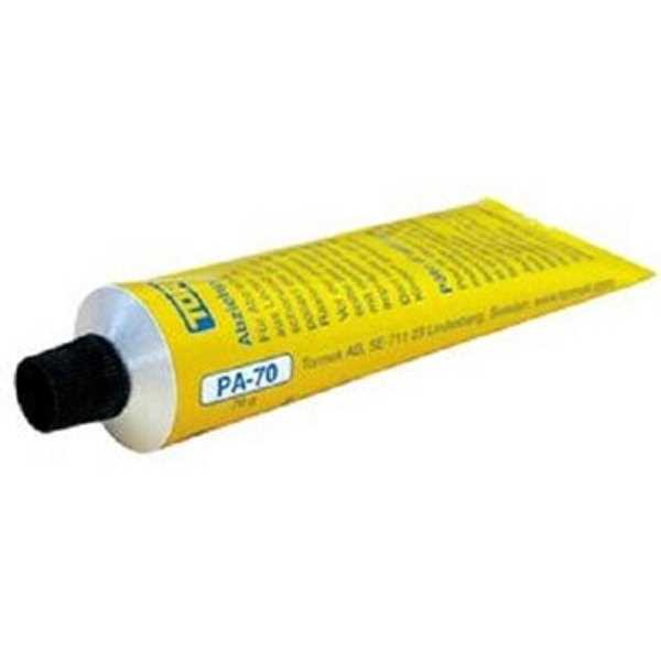 The honing compound is used together with the Tormek Leather Honing Wheels. The unique qualities of the leather together with the honing compound will effectively remove the burr created from sharpening, without damaging the edge. At the same time, it will also polish the bevel to the finest finish. The honing compound contains a combination of micro abrasives and polishing components (average grain size 3 micron). One application lasts for about 5–10 tools. Work the honing compound into the leather. The leather honing wheel will become saturated and more efficient the more you use it. When you have a new honing wheel, impregnate it first with a light machine oil so that it gets the right texture and can absorb the honing compound. If you work in a dry climate, you might need to re-impregnate the honing wheel after some time with a few drops of oil before you apply fresh honing compound. Do not let the compound dry, apply more oil if necessary.
