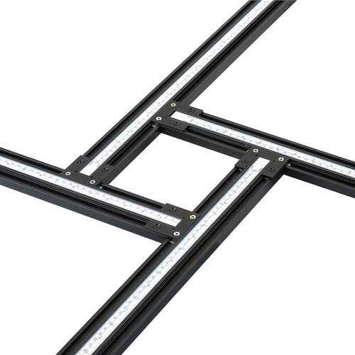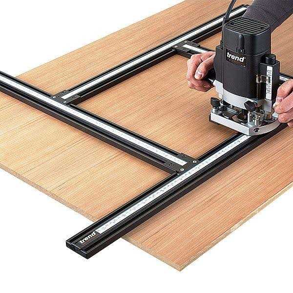 Trend VARIJIG Adjustable Frame System can be used to cut recesses, slots and face panel moulds. It comes with 4 x alloy extrusions with scales, 4 x corner brackets, 1 anti tilt shoe and 1 x anti tilt shoe fixing screw. Adjustable frame for rectangles or squares. Allows a router to cut recesses, slots and face panel moulds. Four lengths of 700mm extrusion with dual metric/imperial measuring scales. Can be used to create panel doors for kitchens. Working area 600 x 600mm and cross cut accuracy to 0.1mm. Use with a guide bush with minimum 8mm spigot length or use unibase as a guide.