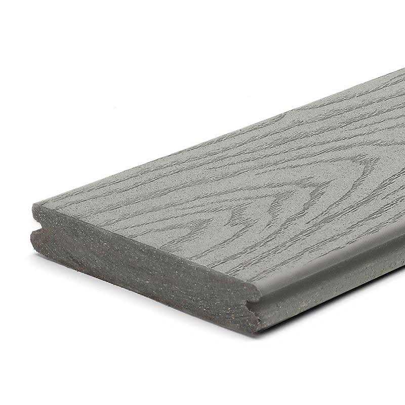 Find out which decking color is the perfect fit for your home with this 12-inch board sample. Medium walnut brown. Features a simple wood-grain pattern for a clean finish. “High-performance shell technology protects against rot. and termites”. Made with 95% recycled materials. Find out which decking color is the perfect fit for your home with this 12-inch board sample. “High-performance shell technology protects against rot. and termites”. Features a simple wood-grain pattern for a clean finish. Light heather grey. Made with 95% recycled materials.