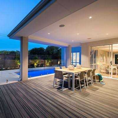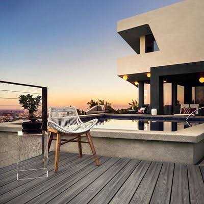 Find out which decking color is the perfect fit for your home with this 12-inch board sample. Medium walnut brown. Features a simple wood-grain pattern for a clean finish. “High-performance shell technology protects against rot. and termites”. Made with 95% recycled materials. Find out which decking color is the perfect fit for your home with this 12-inch board sample. “High-performance shell technology protects against rot. and termites”. Features a simple wood-grain pattern for a clean finish. Light heather grey. Made with 95% recycled materials.
