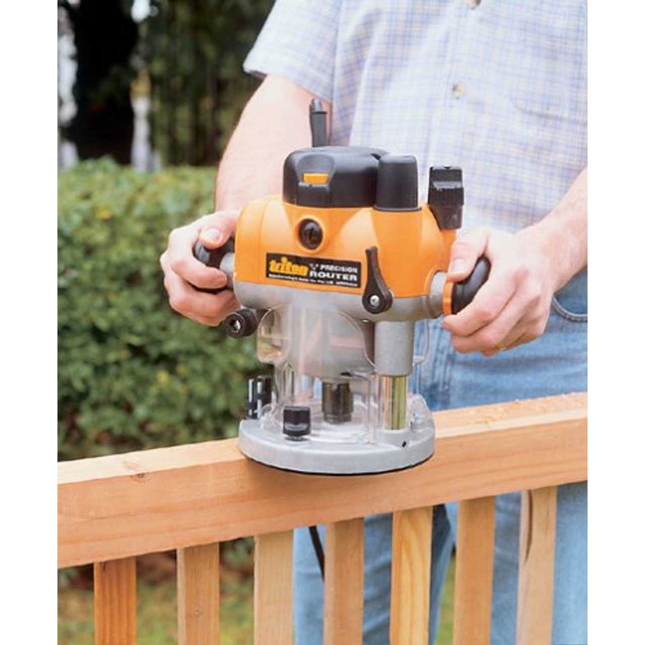 The triton tra001 has a powerful 3. 25 Hp motor, able to handle even the toughest workpieces with the motor running at 8000 -21000 rpm’s. It features a wide range of premium features: easy-set, direct reading, 3-stage turret for precise pre-set cut depths. Single button switches from plunge to fixed-base router with rack and pinion height adjustment. Through base, single wrench, bit change is achieved with automatic spindle lock. Soft start and variable speed lets you select the perfect speed for all cutter types. Micro winder enables continuous fine depth adjustment through the full plunge range. Safety switch shutter locks closed in bit change mode to prevent power-on. Multi-function fence provides excellent control for handheld use and circle cutting. Automatic spindle lock engages only when the power switch is closed. Removable plunge spring allows easy bit adjustment when table mounted. Fully enclosed guarding provides maximum protection from the cut zone. Side air vents reduces intake of dust into the motor casing when mounted upside-down in a router table. Quick access to change worn brushes. Kit includes: 3. 25 Hp router, multi-function fence, a 1/2-inch collet with a 1/4-inch reducer, and collet wrench.