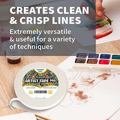Arts & Crafts Tape by TSSART. Details:Description TSSART White Artist Tape Pro for Paper This tape is easy to peel off and residue-free, suitable to use on canvas, watercolor paper, for framing needs and etc. Work with all major art paper media. Residue.