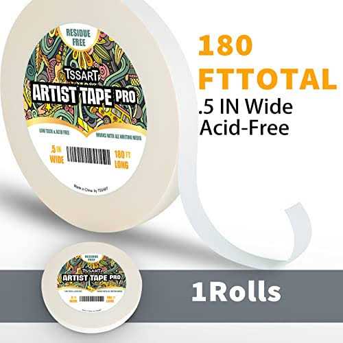 TSSART White Artist Tape Pro – Low Tack Masking Artists Tape for Drafting Art Watercolor Painting and All Paper Media – Acid
