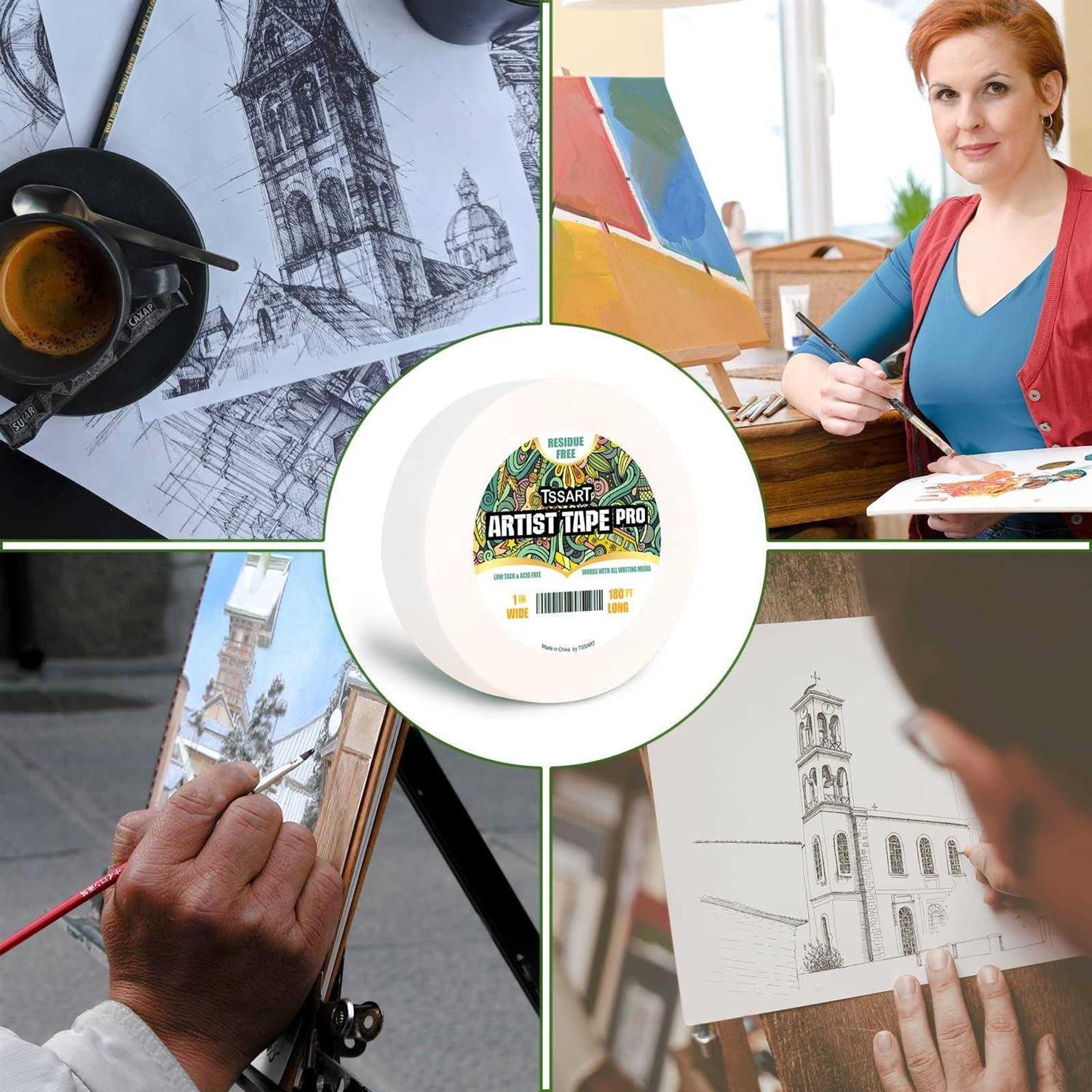 TSSART White Artist Tape Pro Low Tack Masking Artists Tape For Drafting Art Watercolor Painting and All Paper Media