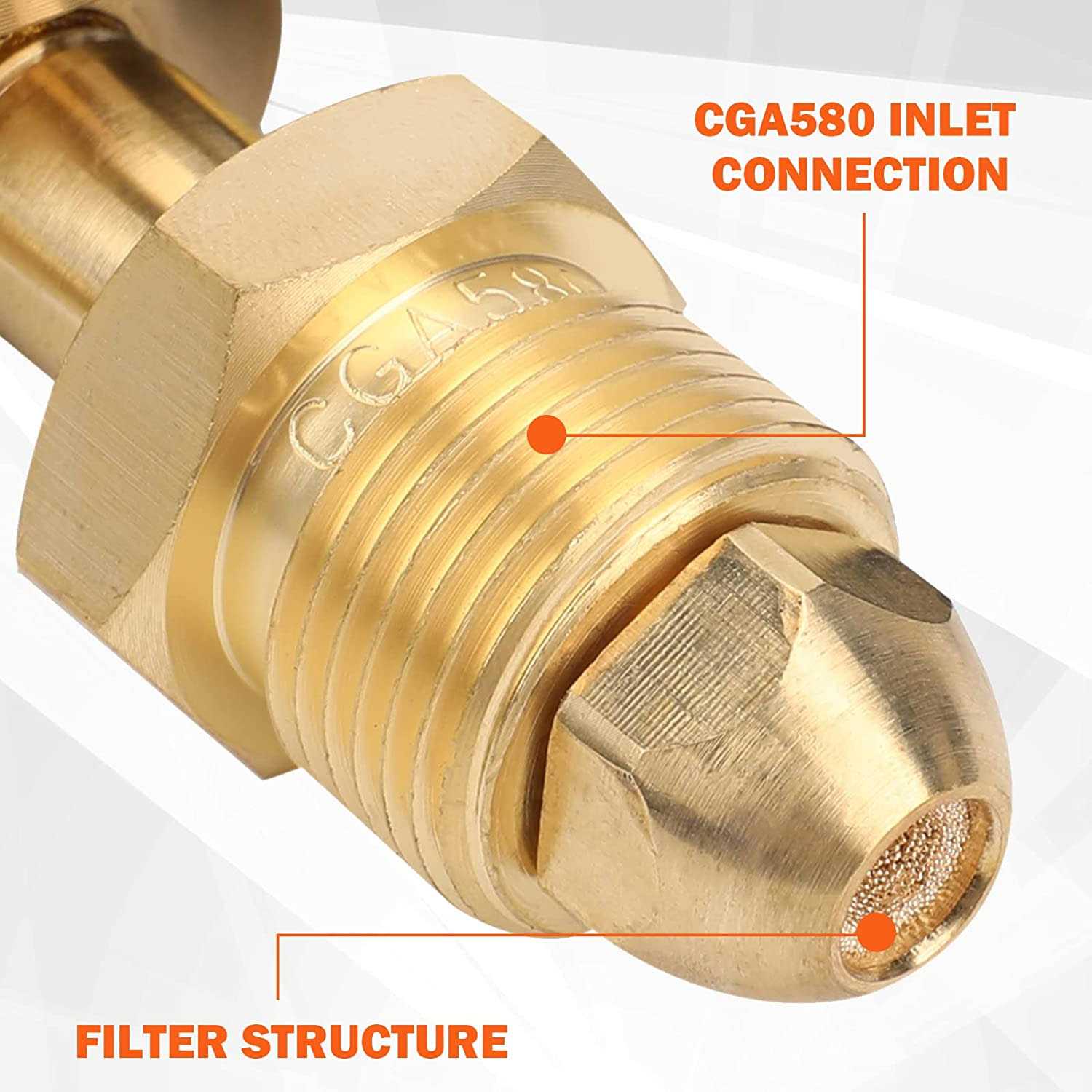 Nitrogen Regulator with 0-400 PSI Delivery Pressure, 60 Hose CGA580 Inlet Connection and 14 male Flare Outlet Connection