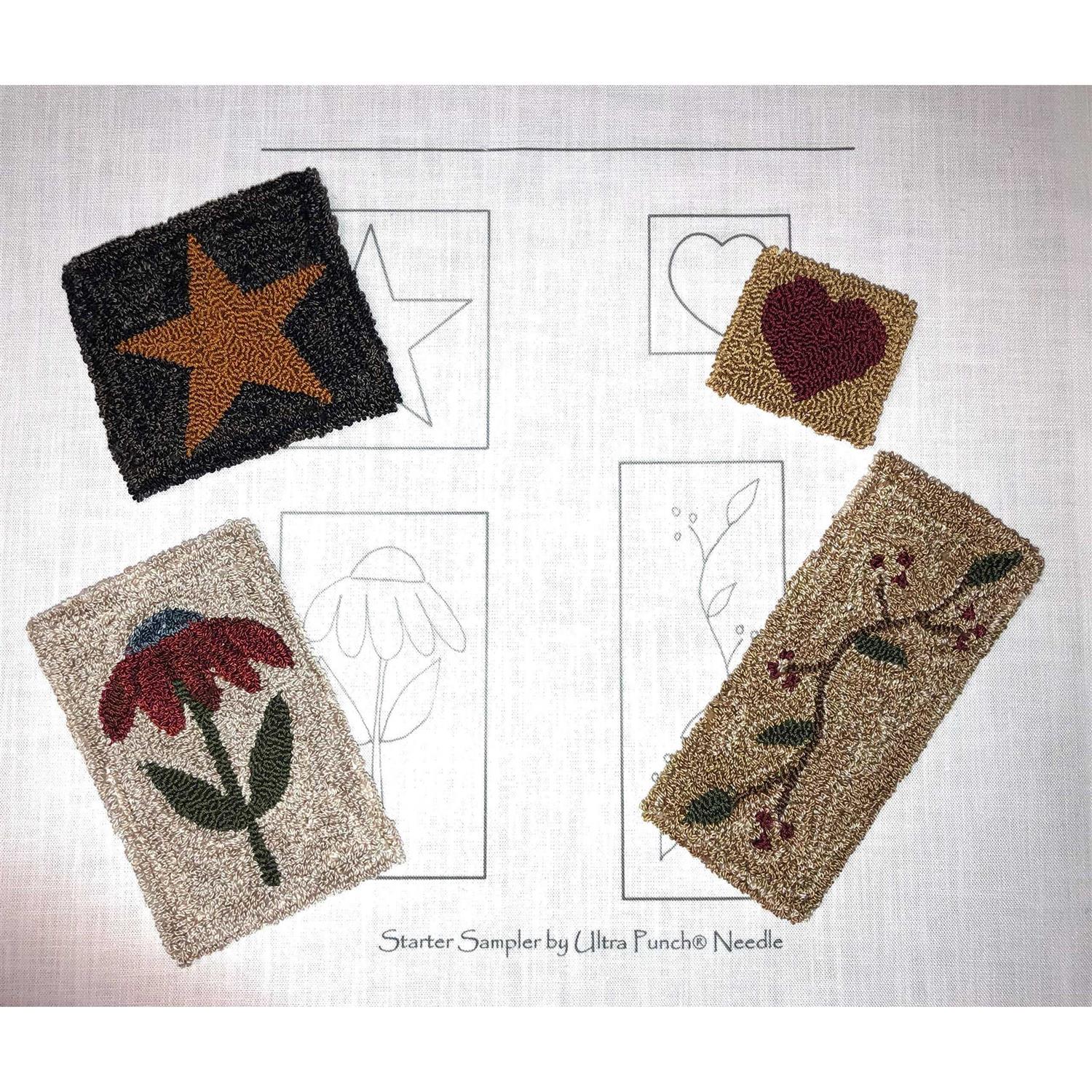 The Ultra Punch 3 Needle set comes with the ergonomic blue punch needle tool, 3 interchangeable needle tips (small, large, and a medium tip installed), two threaders, one open spring (for large needle), and a detailed instruction book. The handle is specially designed to prevent hand fatigue when punching and has adjustable loop heights that sets this punch needle apart from the rest! Be sure to look for the Ultra Punch Sampler that you see in picture #2 as a companion learning piece to go with your Ultra Punch Needle. Ultra Punch Sampler is sold separately. Ultra Punch Needle is for use with threads. Ultra Punch Needle is not for use with bulky yarns.