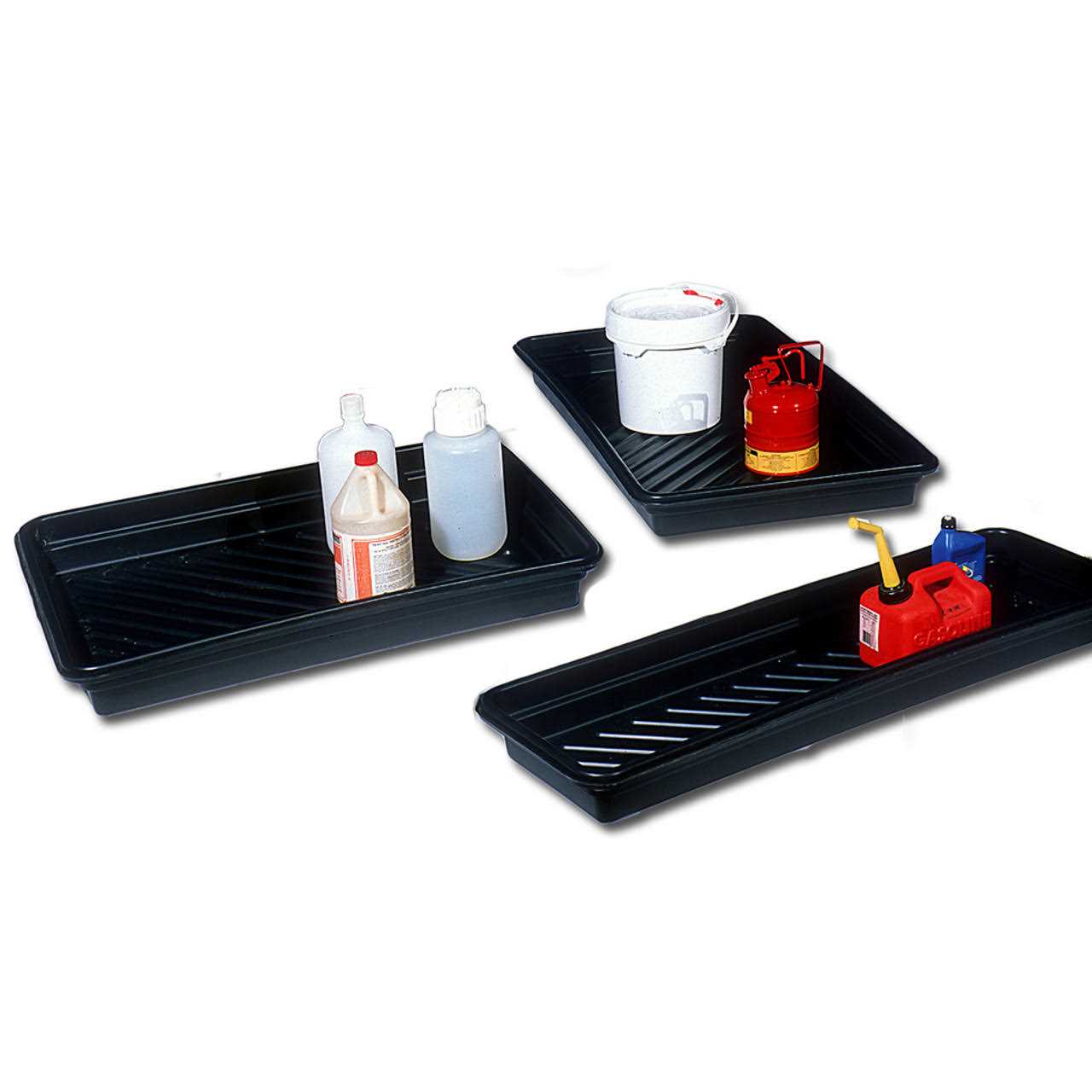 Help keep messy drips and spills off floors with this ULTRATECH Ultra-Utility tray. Heavy-duty polyethylene won鈥檛 corrode or rust, and a ribbed platform on the bottom of the tray helps keep cans, pails, and other containers out of smaller spills. Trays are nestable to ease storage when not in use. Model is suitable for long-term storage (over 1 yr.) if temperature is maintained at 100掳F or less.