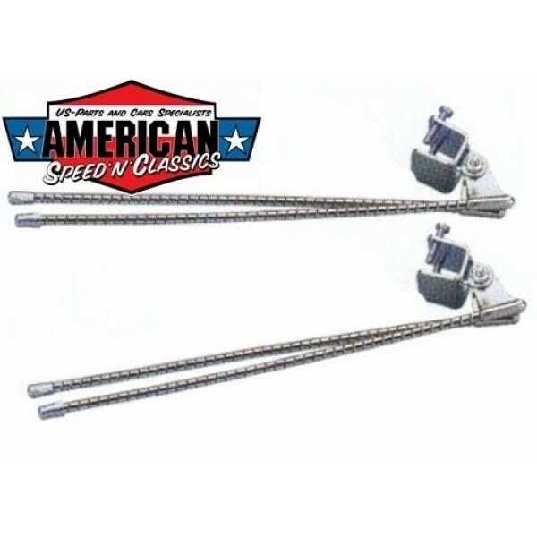 Our clamp-one Chrome Curb Feelers are 11-3/4″ long for that “old school” vintage look. Theyre also great for preventing curb damage to body and wheels. Manufactured in Taiwan.