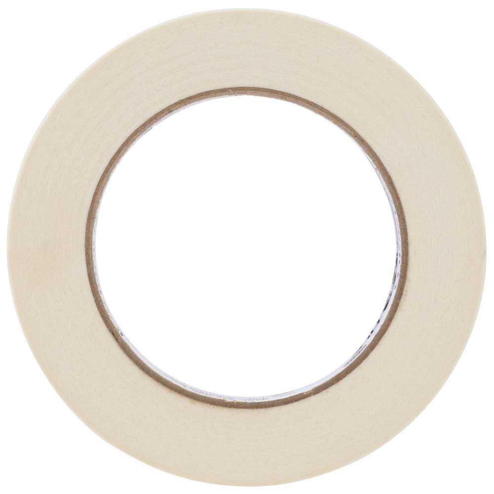 Beige crepe paper masking tape coated with an aggressive pressure-sensitive natural rubber adhesive. Designed primarily as an all-purpose product for non-critical applications. Ideal for interior paint masking, textile, carpet seaming, silk screening, mail rooms, golf club shaft (build-up) and for light-duty bundling, packaging, industrial, manufacturing, splicing and tabbing. Size: 18 mm x 54.8 m.