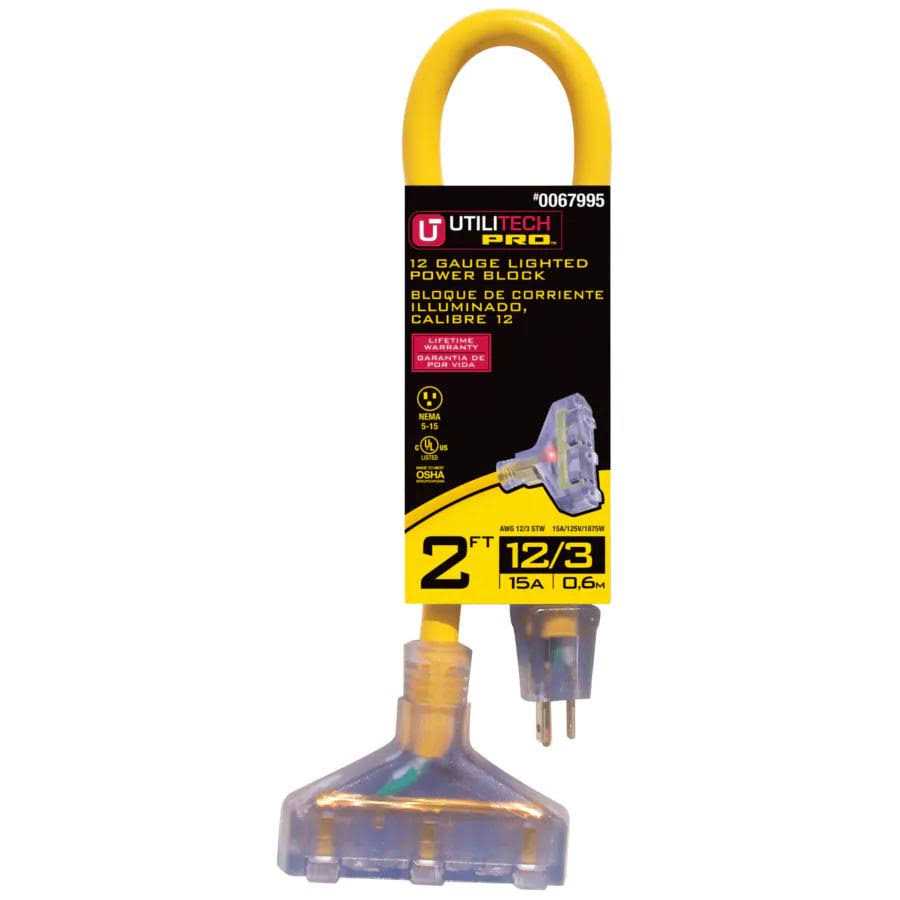 Utilitech 2-ft 12 / 3-Prong Outdoor STW Heavy Duty Lighted Extension Cord in Yellow | UTA611802
