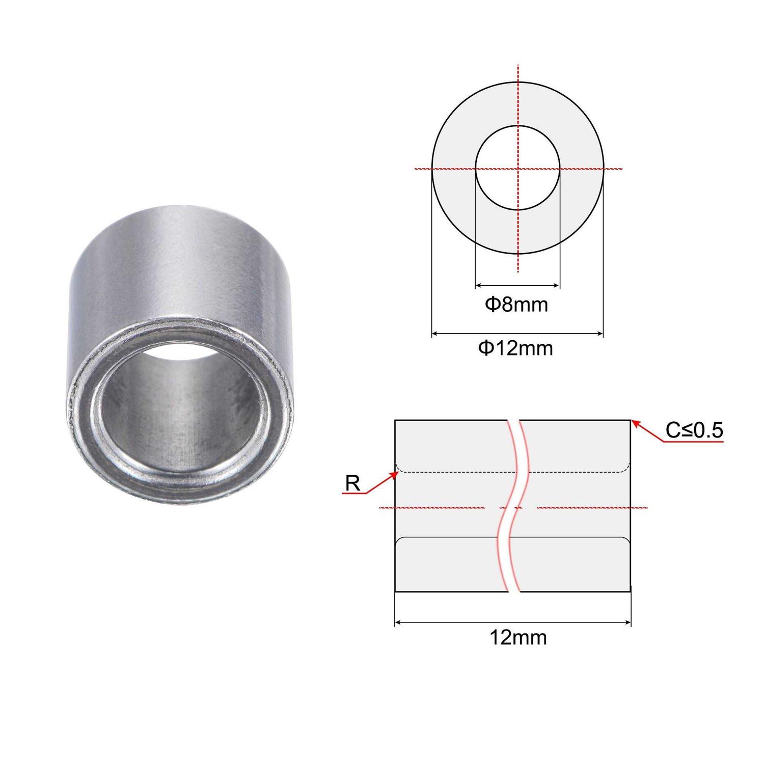 Uxcell Sleeve Bearings Sintered Iron Self-Lubricating Bushing | Harfington, 8x12x12mm / 12pcs