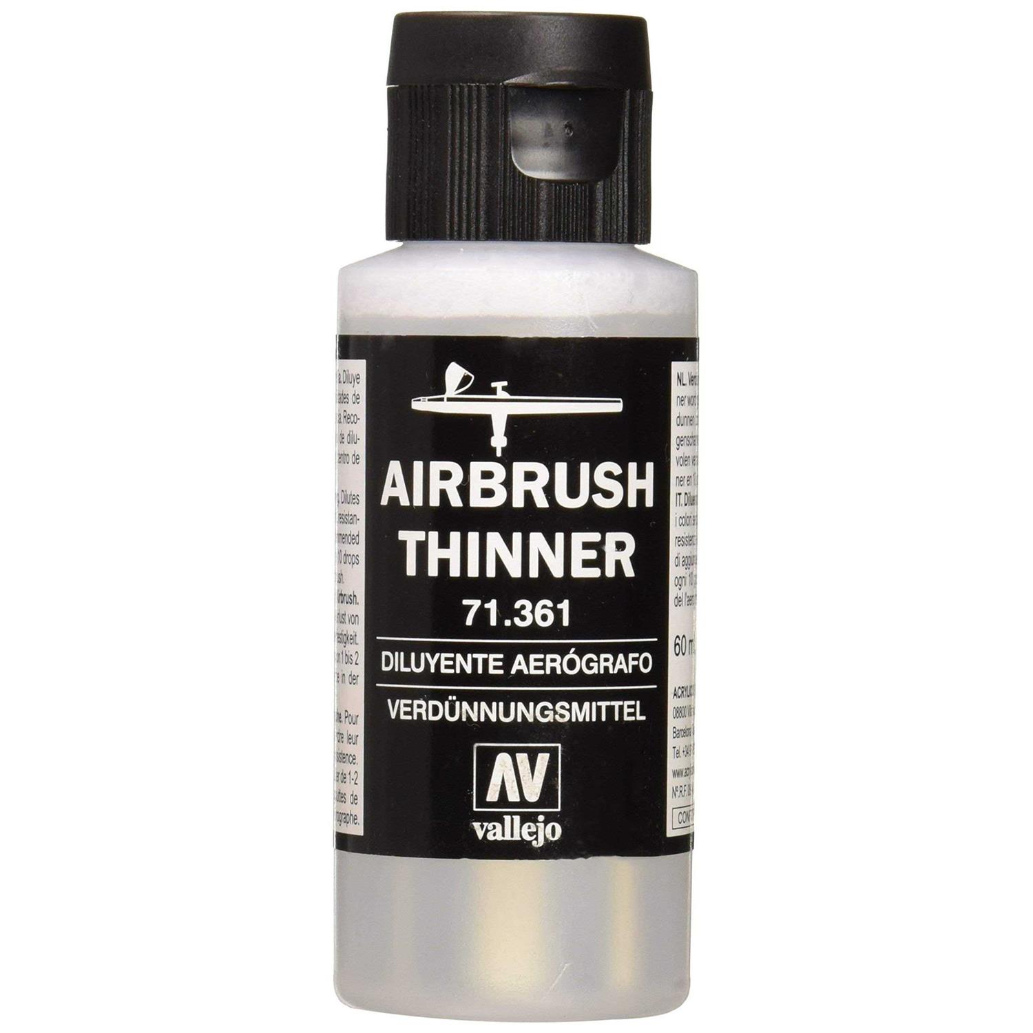 Airbrush Thinner is used to extend the colors, increase fluidity and delay their drying time. It does not alter the properties of the colors. Vallejo recommends the addition of a few drops of Thinner to the colors while airbrushing.