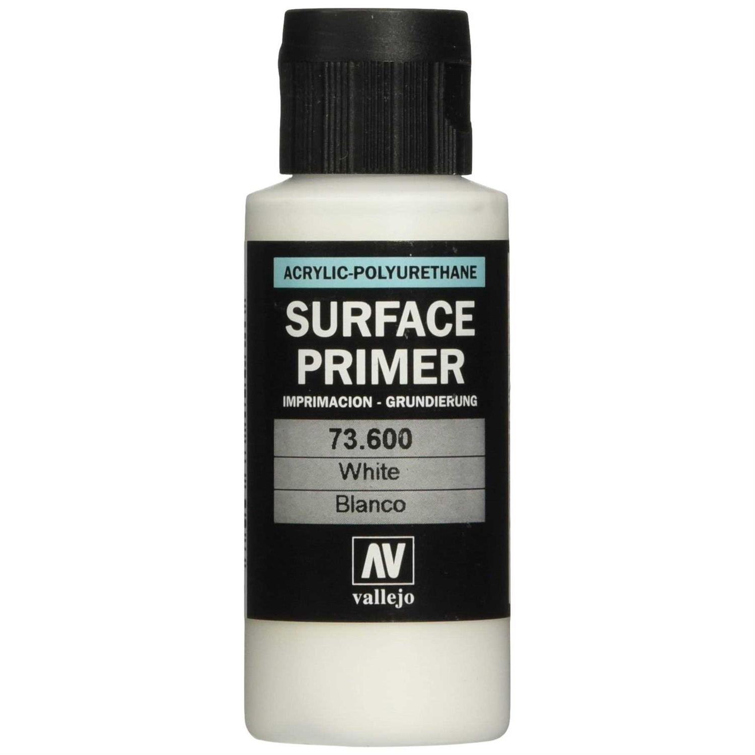 Vallejo White Surface Primer This high-performance Vallejo White Primer will have you prepared for any project, with an impeccable finish that will last. Achieve a professional and reliable finish every time you use it. Surface Primer is available in a range of basic shades most frequently employed to prepare the surface of the model or miniature before starting the painting process. Primers can be applied on all surfaces, resin, PVC, brass, white metal or wood. The primer preserving even the smallest detail of a model, and improves the adherence of the colors applied on this base. It is recommended to apply the Primer in various layers; the product dries rapidly and forms a homogenous film of extraordinary strength and resistance within a few hours after application. Surface Primer can be used directly or diluted with Vallejo Airbrush Thinner of Flow Improver. The recommended compressor settings are around 15-20 PSI or 0.5 to 1 kg. For best maintenance of the airbrush, it is recommended to use the Vallejo Airbrush Cleaner.