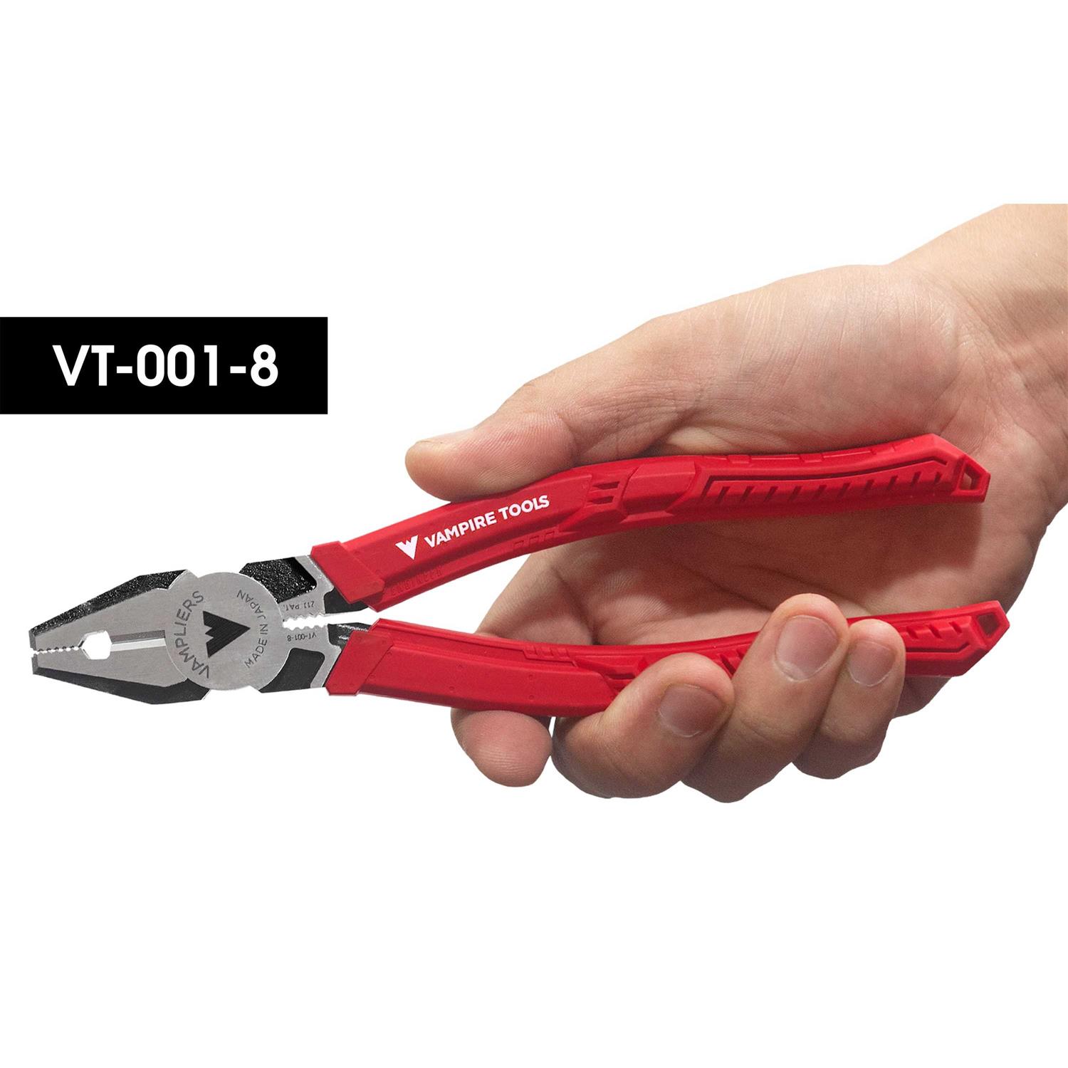 An extraordinary pair of pliers that incorporates patented and award winning VamPLIERS Pro Technology to solve screw extraction problems. Uniquely designed and patented concave shaped jaws with vertical and horizontal serrations on the inside jaws, which make it possible to grab on to a small stripped/rusted/corroded screw or rounded nut for extraction. VamPLIERS Pro will work on screws that have special, tamper-proof, or unique heads like a Torx screw. They have smooth varnished finish and contains environmentally friendly elastomer for ergonomic grips. Manufactured in Japan, VamPLIERS are made of high quality carbon steel from Kobe, Japan.