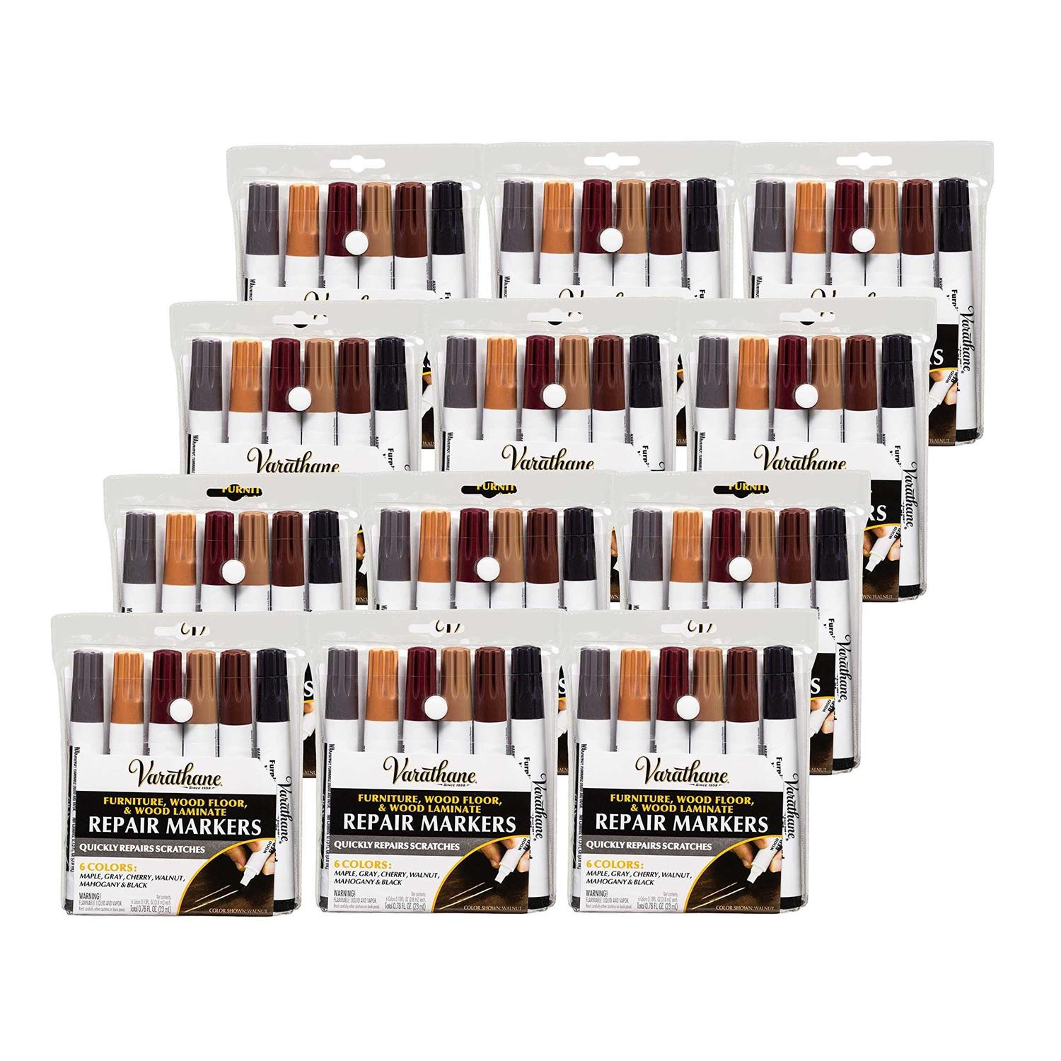 Varathane 347840-12PK Wood Stain Repair Marker Kit, Assorted Warm Tones, 12 Pack
