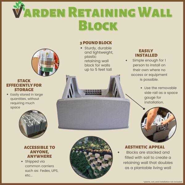 The blocks are engineered to achieve walls up to 5 tall. A revolutionary landscape retaining wall block designed specifically for planting to yield fantastic living coverage. Each living retaining wall can become a masterpiece of environmental stewardship!