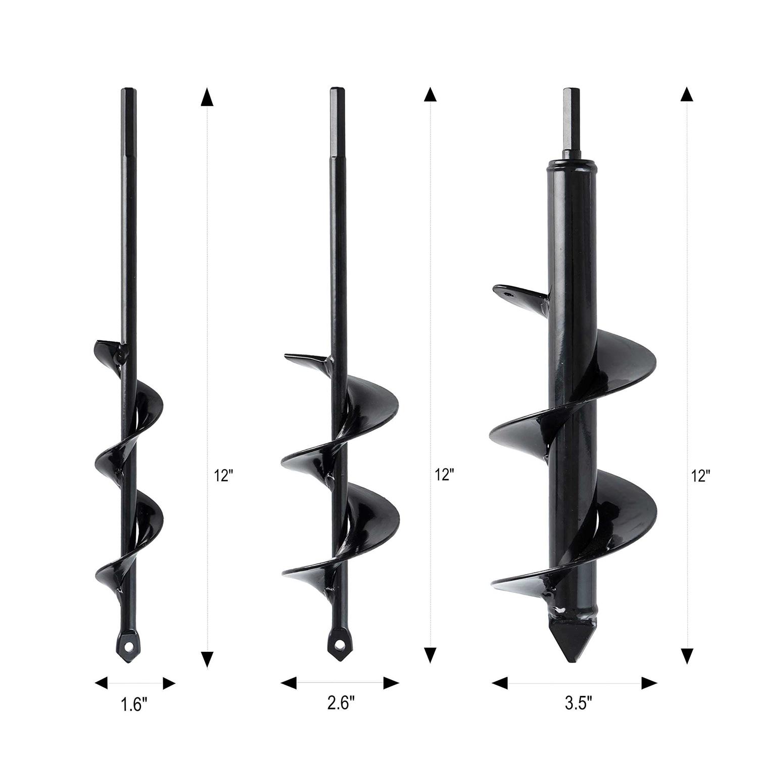 VASGOR Set 3 (1.6×12″, 2.6×12″, 3.5×12″) Auger Drill Bit for Planting – Easy Planter Garden Auger – Bulb & Bedding Plant Augers – Posthole Digger