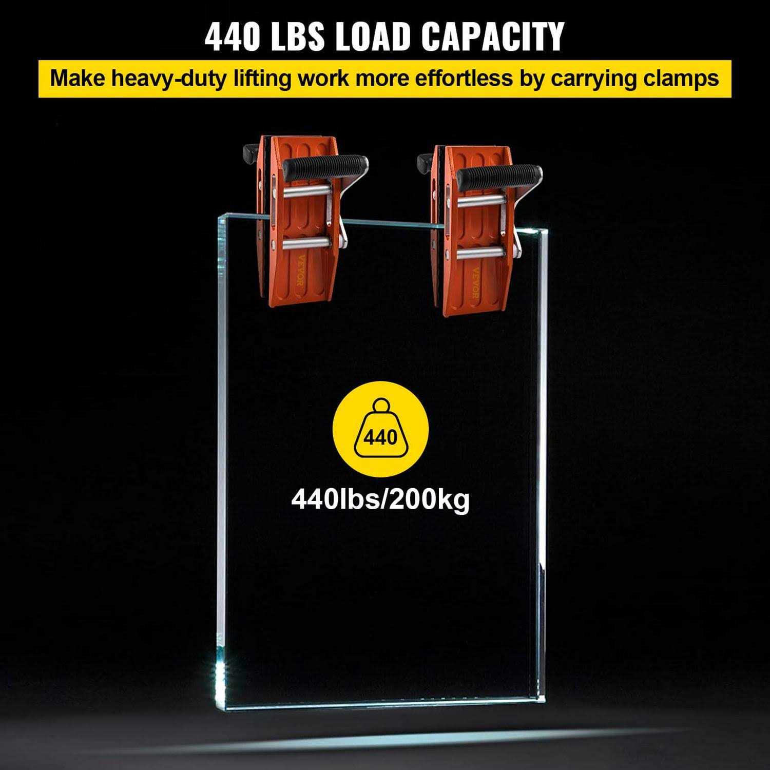 Brand Introduction VEVOR is a leading brand that specializes in equipment and tools. Today, VEVOR has occupied markets of more than 200 countries with 10 million plus global members. Why Choose VEVOR? 1. Tough Quality Assurance 2. Incredibly Low Prices 3. They show excellent performance in moving glass, wood, and granite plate within the size. Carrying Weight Capacity Double stone carrying clamps have a 440 lb/200 kg loading capacity. Thus, using our clamps to lift heavy flat objects is more labor-saving. Scratch Proof Rubber Lining Rubber pads of the stone-carrying clamps prevent slipping during transportation and avoid damage and scratches. Metal Construction High-quality stainless steel sliders are more wear-resistant and stable, ensuring smooth opening and sliding. Perfect Match The slip-proof handles of clamps are more comfortable to hold. Use our rubber gloves for double security. Lift & Move Various Materials Stone Carrying clamps are portable lifting tools for moving large glass slabs, metal sheets, granite, and plywood. They are widely used in factories, home decoration, DIY, etc. Specifications Model: 50BYJ Opening