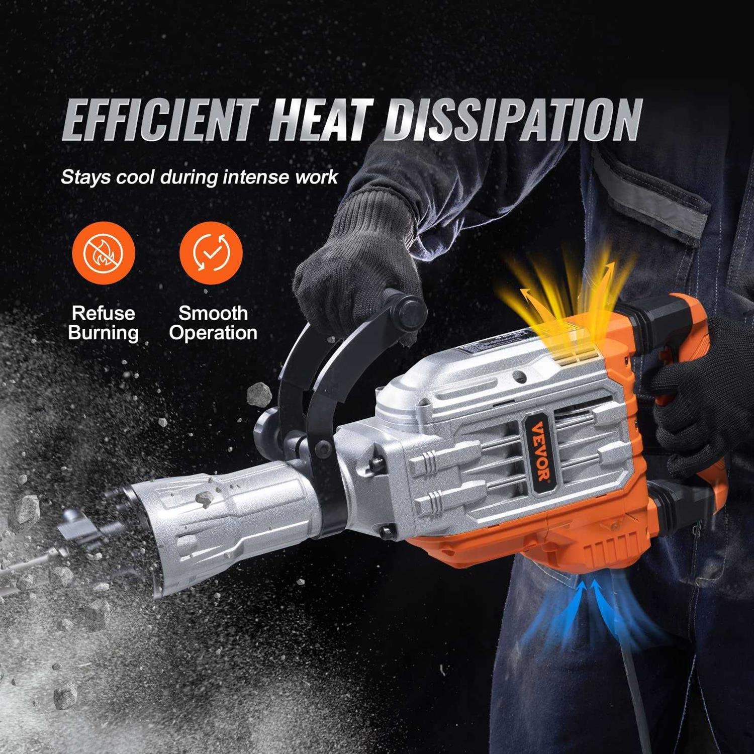 VEVOR Demolition Jack Hammer Concrete Breaker 3500W Electric Hammer 2 Chisel Bits