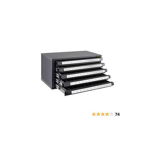 Efficient Storage Organizer: This five-drawer 60-compartment drill bit dispenser can easily store collections of drills. It holds a package of wire gauge sizes #1-60 and provides labeled compartments for quick identification and organization. This clear design fits any style.