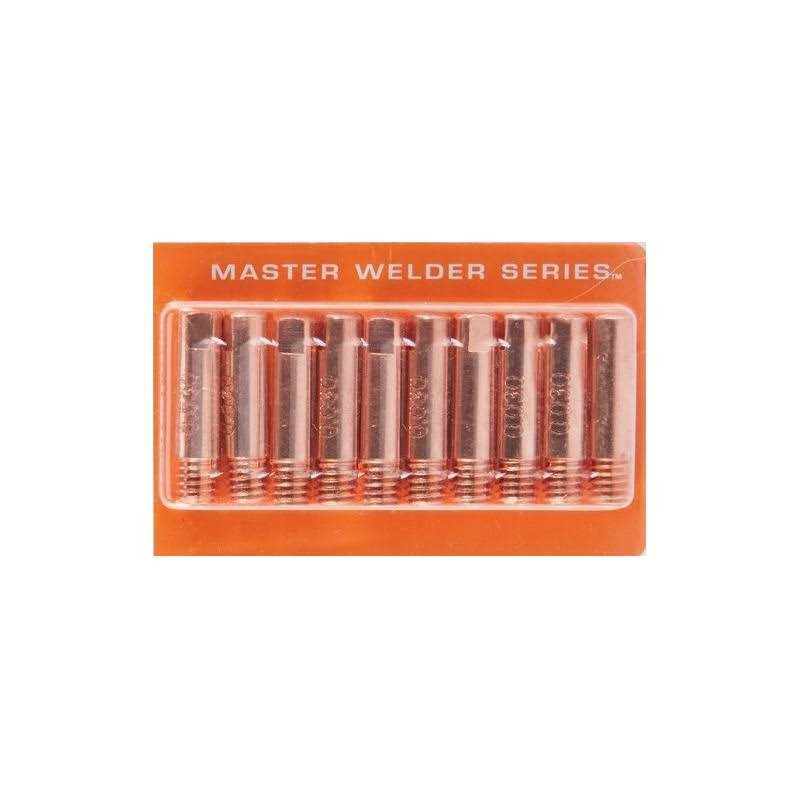 These MIG welding contact tips are designed for improved contact and increased conductivity. Solid copper alloy construction for high conductivity and spatter resistance.