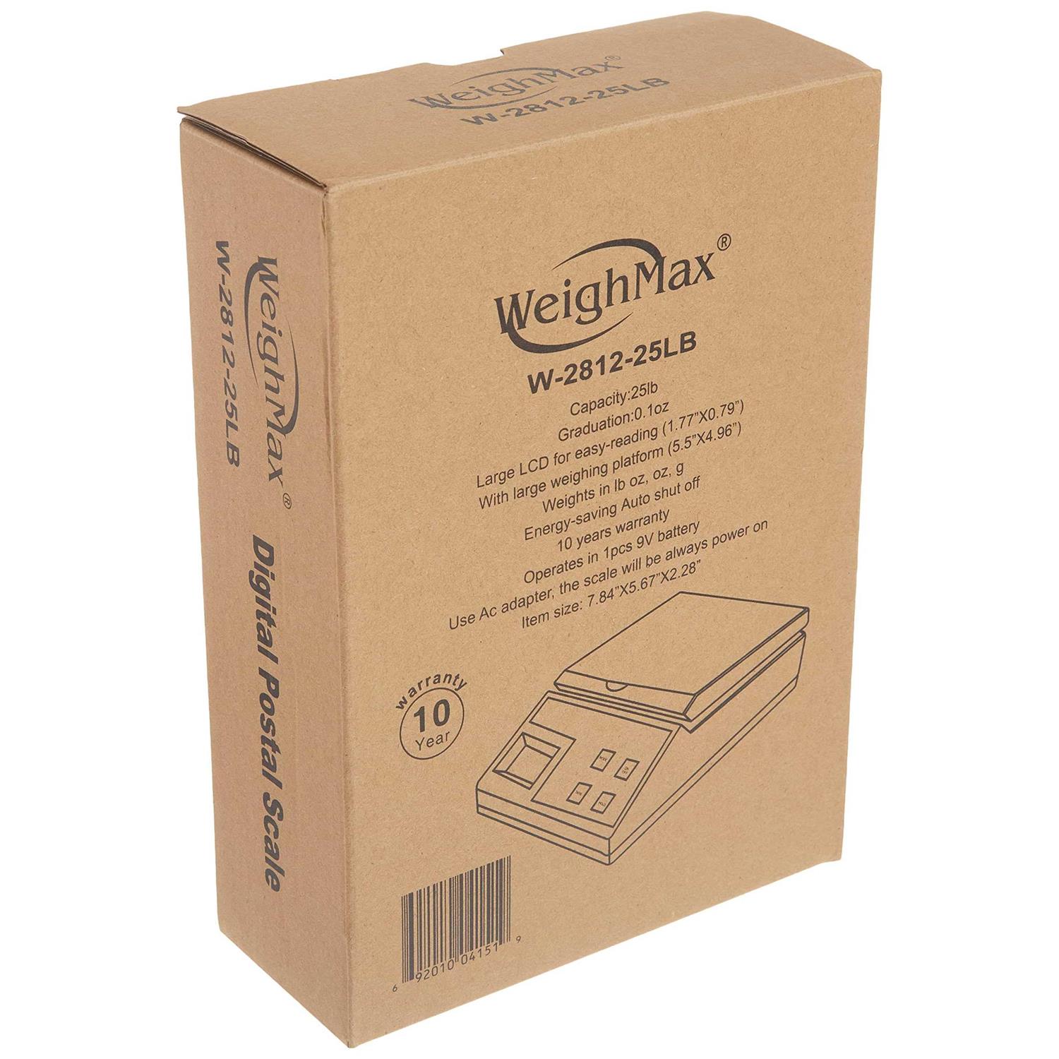 Weighmax USPS Style 25 Lb x 0.1 OZ Digital Shipping Mailing Postal Scale with Batteries