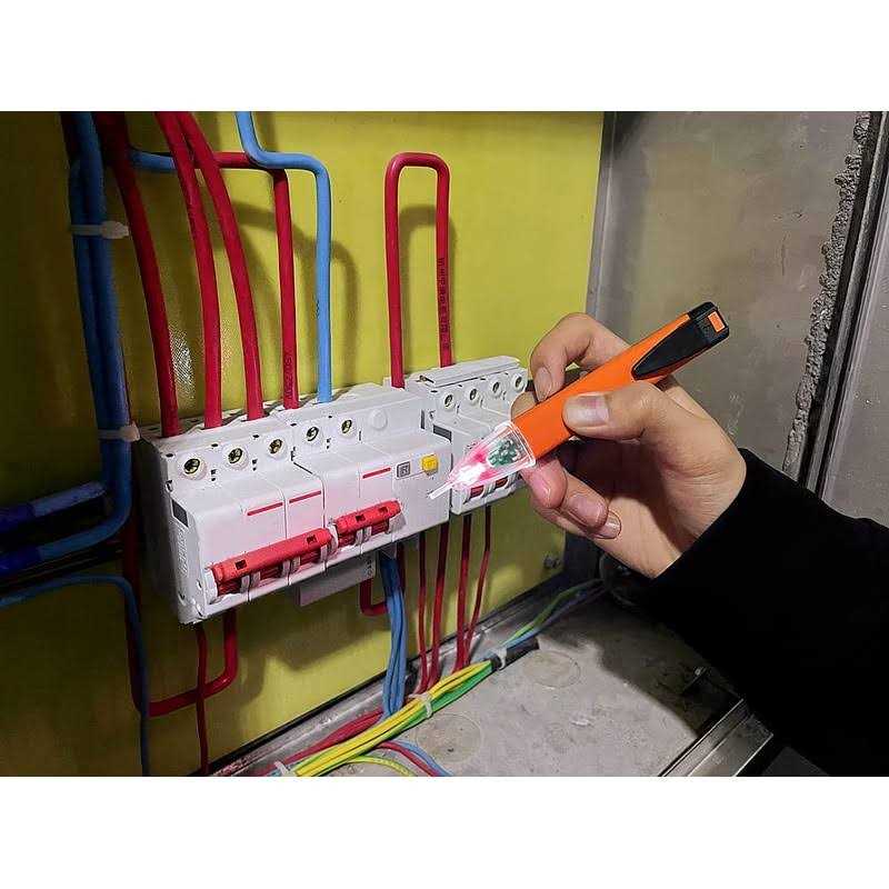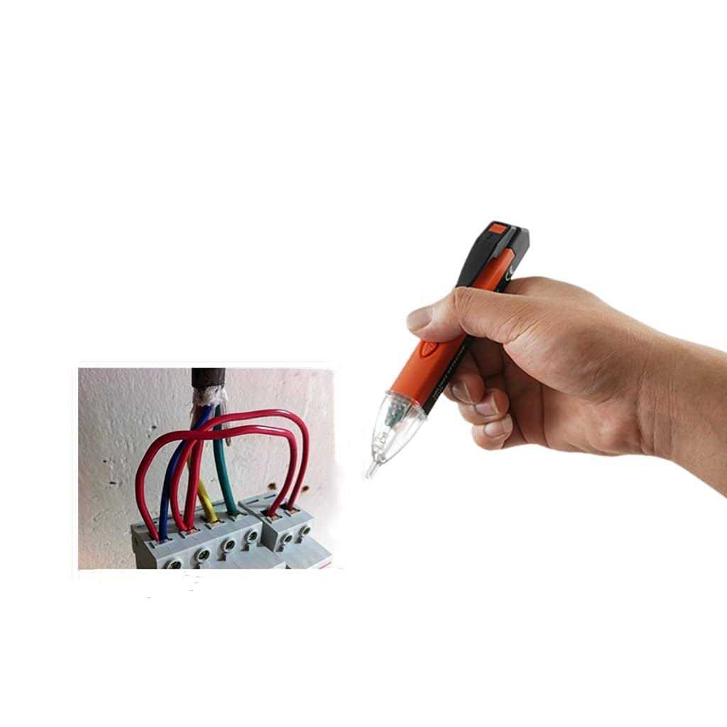 - SAFE&PRACTICAL:Non-contact AC voltage detector Just place the tip near a terminal strip, outlet, or supply cord.When the tip glows red and the pen bee.