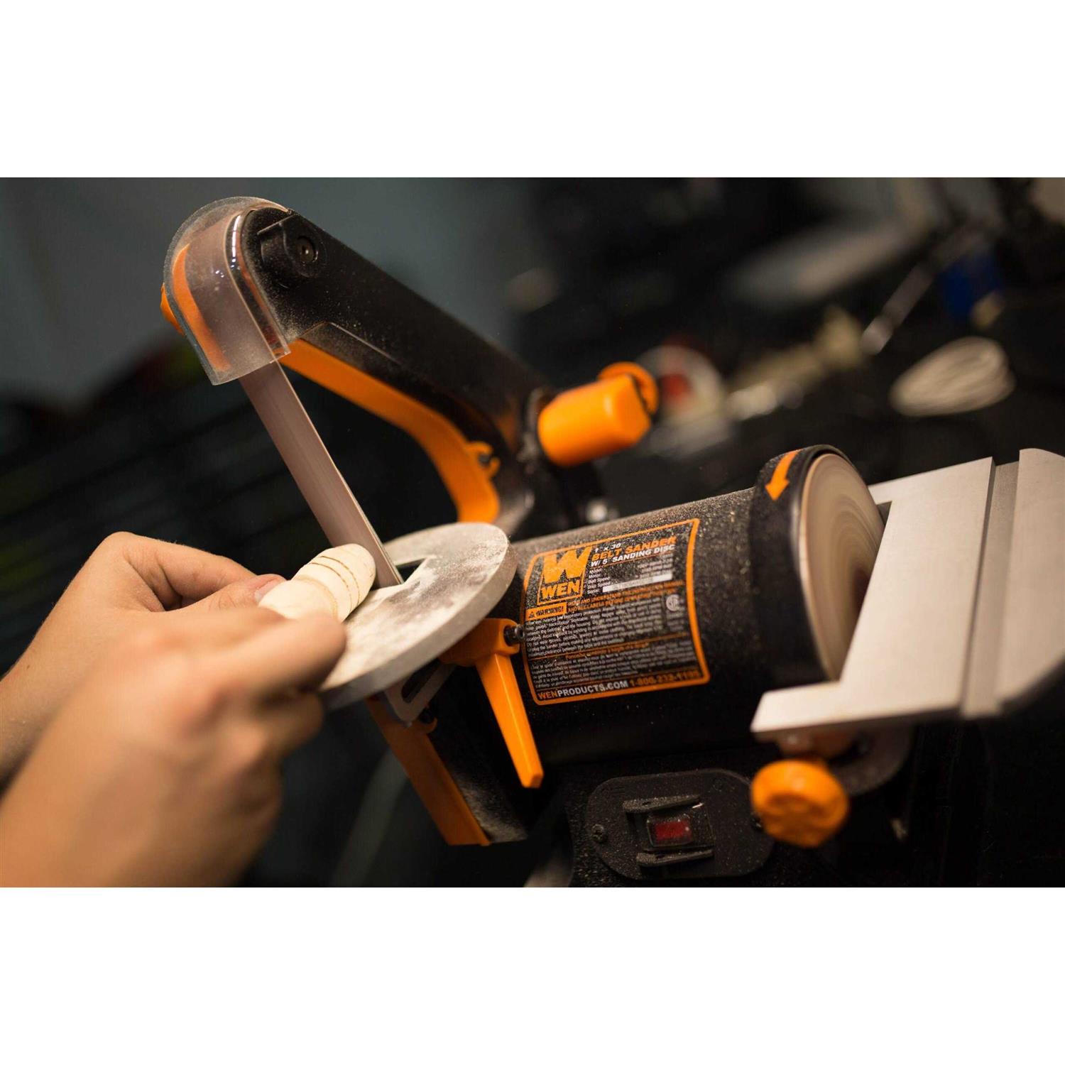 Remember when you needed a versatile and reliable sander? With a 2.3-amp motor, users should anticipate speeds of up to 3160 feet per minute on the belt and 3450 RPM on the disc. Changing the spacious 1-inch-by-30-inch belt is a breeze, giving you the power to switch sand paper grits quickly and easily. The compact design makes transportation and storage easier than ever while the heavy-duty base prevents walking and wobbling during operation. With all of this in addition to the 5-inch side disc, youll have the capacity to sand whatever your heart desires. A sturdy beveling work table accompanies both the disc and the belt to provide a reliable source of support for your workpieces. This package also includes an 80-grit sanding disc, a 100-grit sanding belt, a miter gauge for angled workpieces and two separate dust ports for vacuum attachments. Sand the tightest of corners and the oddest of shapes with the WEN 1 x 30-Inch Belt Sander with 5-Inch Sanding Disc. Remember when you could sand almost anything? Remember WEN.