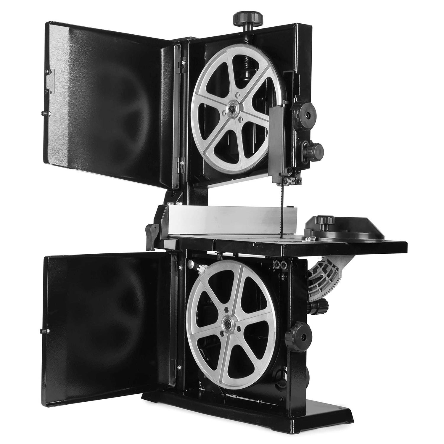 Band Saws by WEN. Details:Remember when you had a saw that was both compact and powerful? The WEN 9-Inch Benchtop Band Saw attacks boards with cuts up to 3-1/2 inches deep and 9 inches wide. The 2.8-amp motor rotates the included 1/4-inch blade at up to 2500 feet per minute. The design of this saw uses 59-1/2-inch blades anywhere from 1/8 to 3/8 inches in width for both intricate and powerful cuts. The spacious work table measures in at 12-1/4 x 11-7/8 inches in size and can be beveled up to 45 degrees. This package includes a miter gauge, an onboard 2-1/2-inch dust port, a fence for creating straight cuts, and an adjustable blade guard with ball-bearing supports. Ball-bearings give the blade smooth operation and a long-lasting life for years of dependable service.
