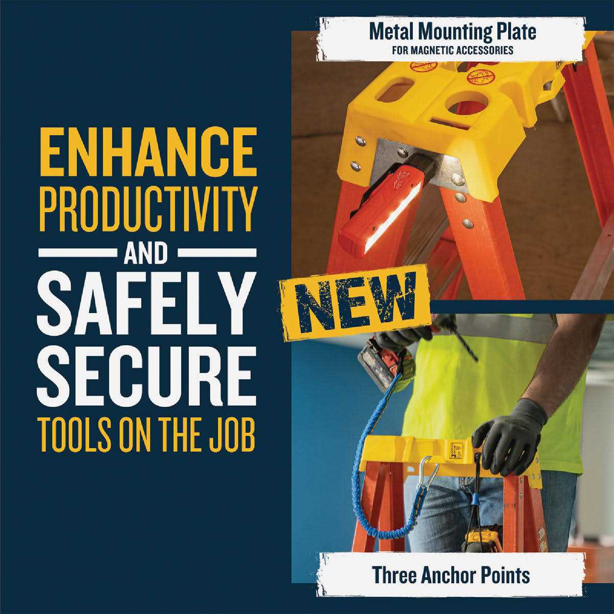 Fiberglass step ladder ideal for any professional. With a duty rating of 300 pounds, it features a LOCKTOP which provides maximum storage capacity for most frequently used tools and components. The LOCKTOP features an impact driver slot to safely hold the #1 most used tool by profressionals today. The steel plate on the side helps expand it’s storage by allowing the use of magnetic accessories, such as lights and laser levels. Three anchor points allow for tools to be tethered to the top to prevent injuries and damages below from falling tools. The patented Lock-in system works with a full line of accessories which extends the usable space on the top. Fiberglass rails are non-conductive for working near electricity. The steps are fully braced and the back of the ladder has a full set of rear horizontals which provides durability and stability. The EDGE bracing system helps protect the rails from damage. Incorporates a wider base than code requires which provides tip resistance pros depend on.