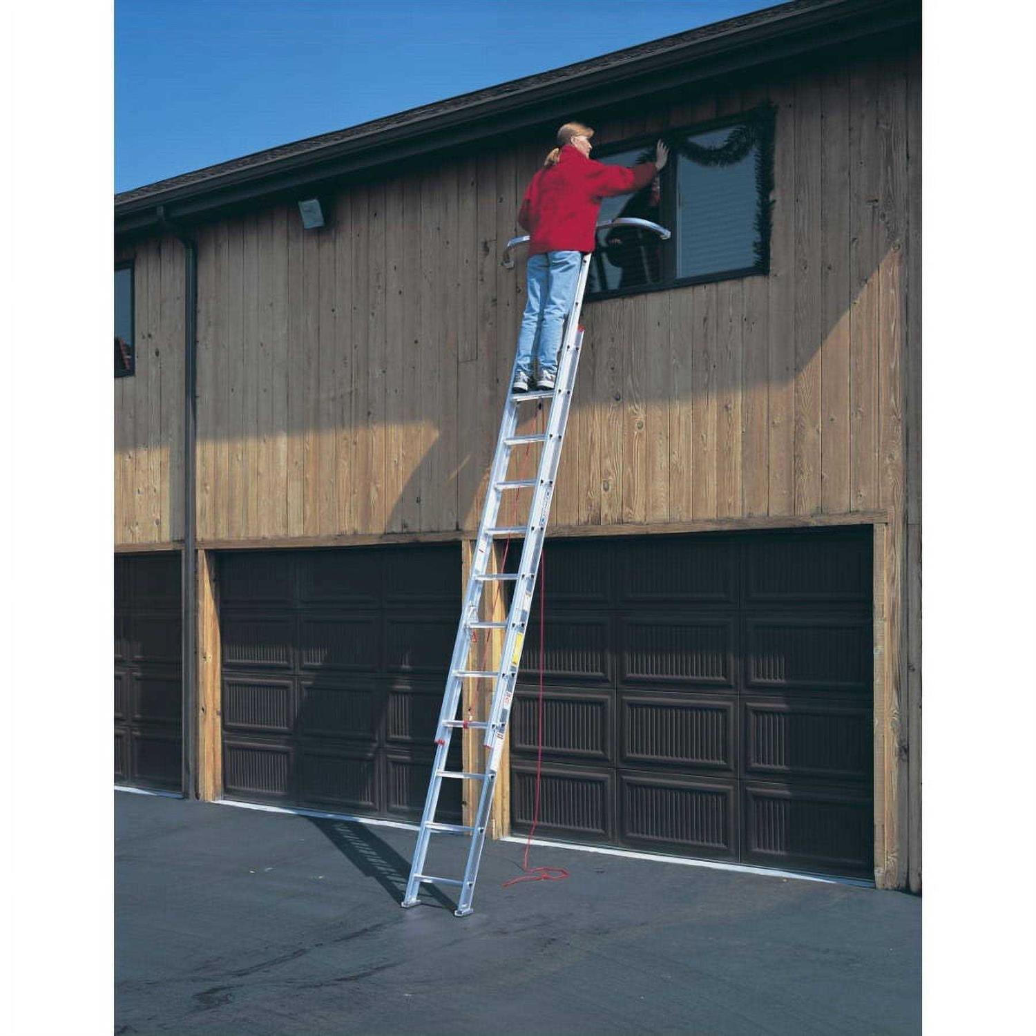 The D1124-2 aluminum 24 feet extension ladder is lightweight yet has a duty rating of 200 lbs. Spring-loaded locks operate smoothly for easy operation. Pivoting shoes with slip-resistant foot pads. Mar-resistant end caps help protect the surface the ladder is leaning against. Exclusive Alflo rung joint means Twist-Proof performance every time.