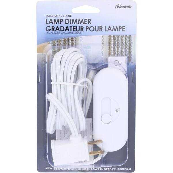 The Westek 4010W Tabletop Lamp Dimmer is perfect for bedrooms, living rooms or any area where you need adjustable lighting. This device offers full-range dimming and a non-skid, non-mar base to protect the surfaces in your home. Compatible with incandescent and halogen bulbs up to 300w. 6-foot cord for added flexibility.