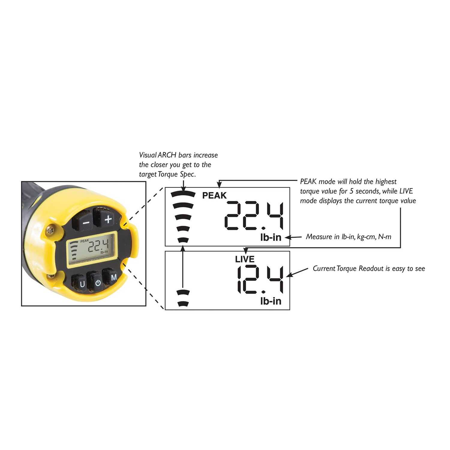 - VERSATILE: 15-100 in/lb. range and measures in lb-in, kg-cm, and N-m