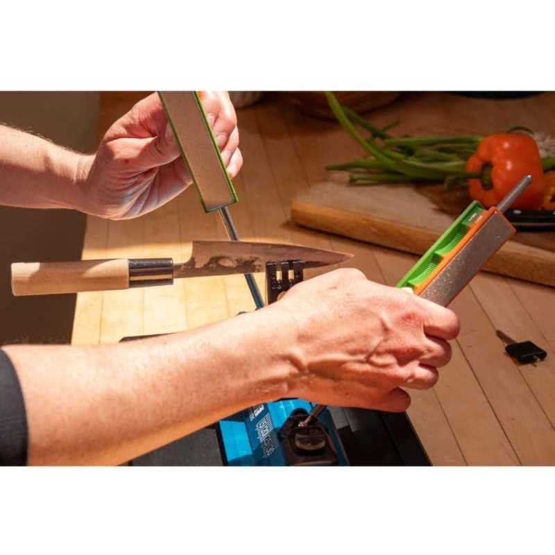 - INCLUDES: 200/600 Grit Diamond Stones Pack, C-clamp for mounting to work surface, practice knife