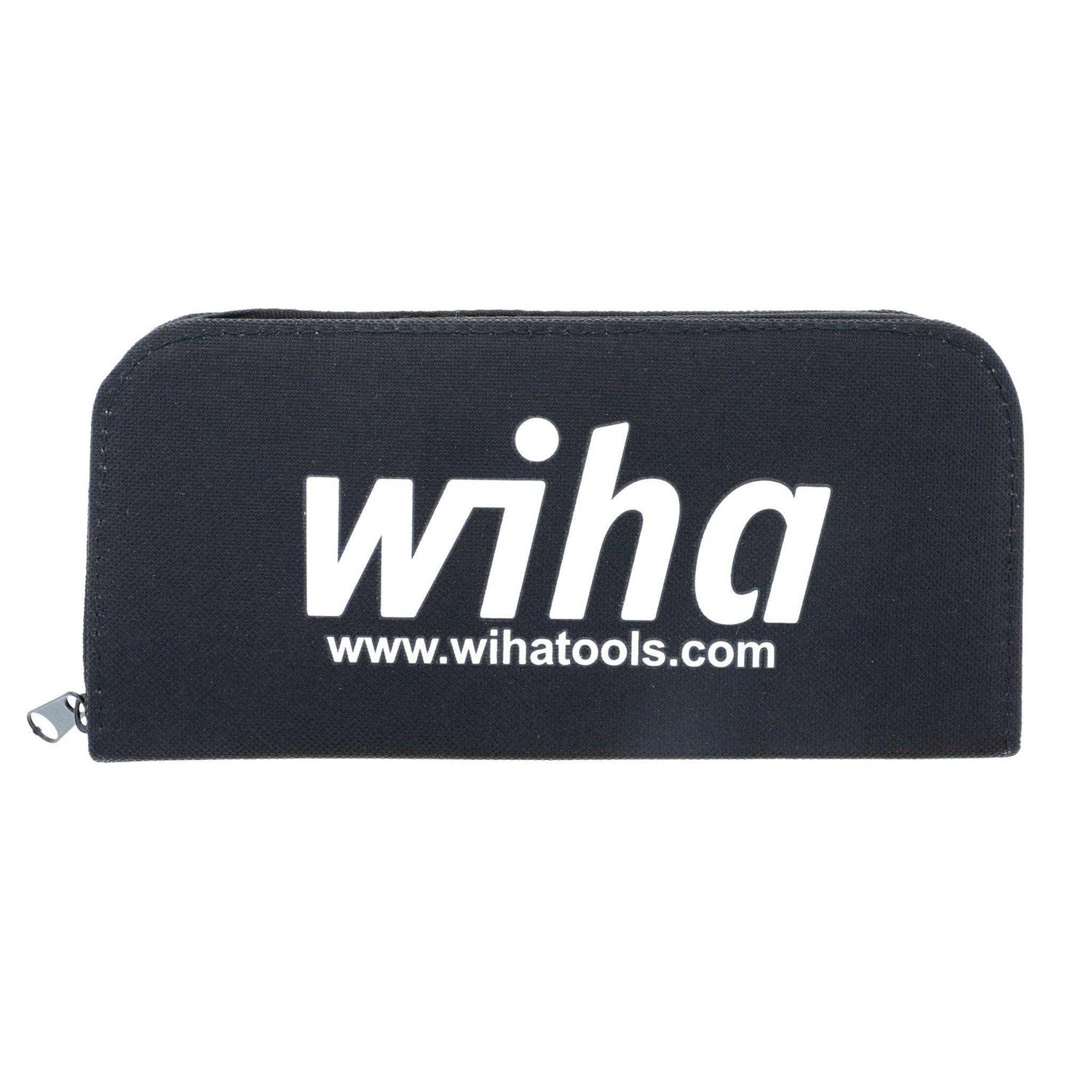 Bits made from Wiha CNC machined chrome-vanadium-molybdenum tool. Wiha Proturn Long Nose Pliers 6. Micro bit set in black canvas zippered storage case.