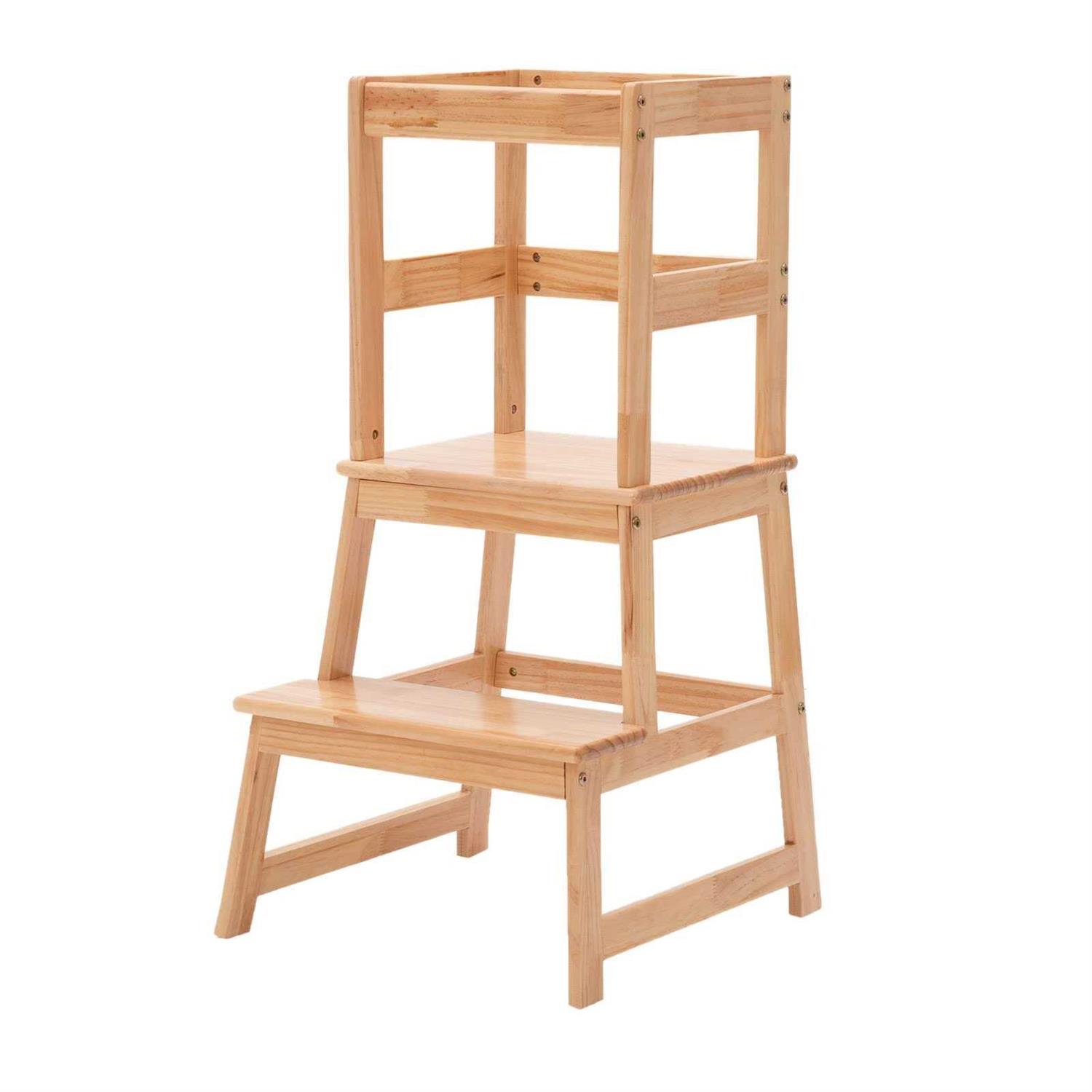 - Kitchen Step Stool for Kids with Safety Rail, Solid Wood Construction Toddler Learning Stool Tower